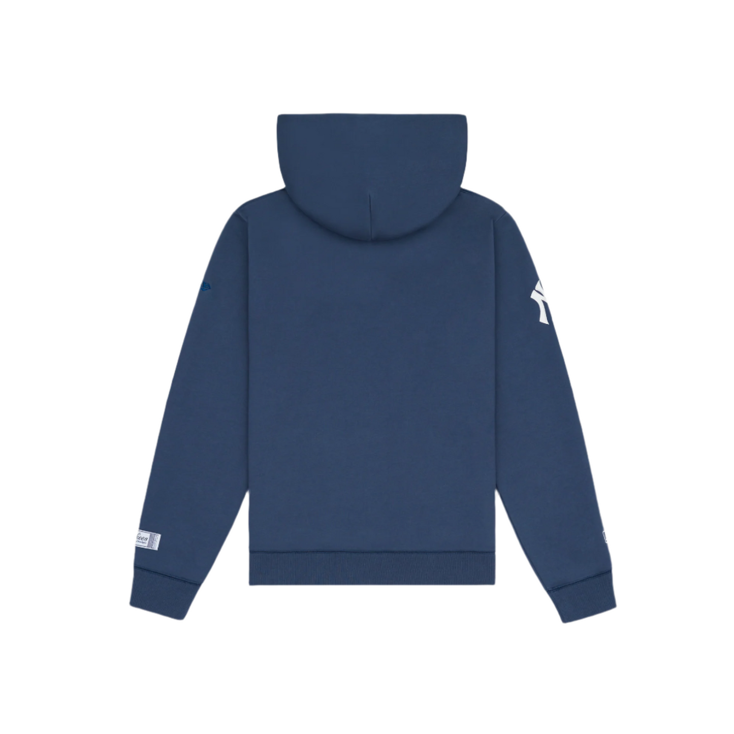 The New York or Nowhere x New York Yankees Navy Signature Hoodie features an embroidered Yankees New York or Nowhere wordmark at the front with kangaroo pockets. Additional details include a Yankees logo and MLB Batterman logo at the right sleeve with a woven Yankees x NYON tag at the left wrist.