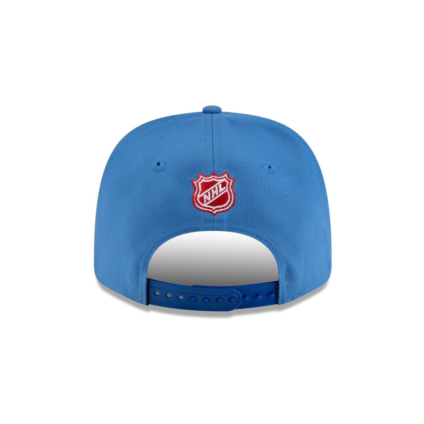 The New York Rangers 2026 Winter Classic 9SEVENTY Stretch-Snap features an embroidered Rangers wordmark at the front panels with a logo at the right-wear side. Additional details include the NHL Shield logo above an adjustable stretch-snap closure the rear and a gray undervisor.
