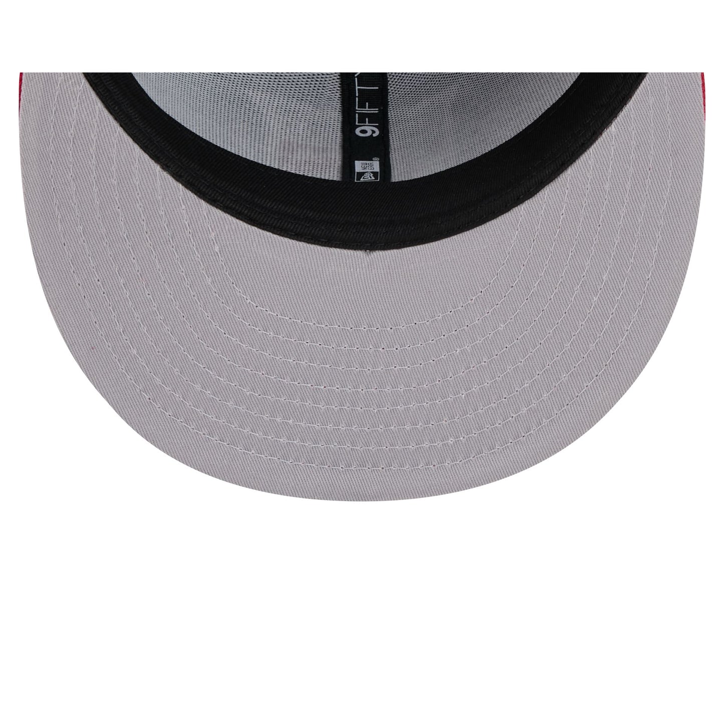 The New York Rangers 9FIFTY Snapback features an embroidered Rangers logo at the front panels with a gray undervisor and a snapback closure at the rear.