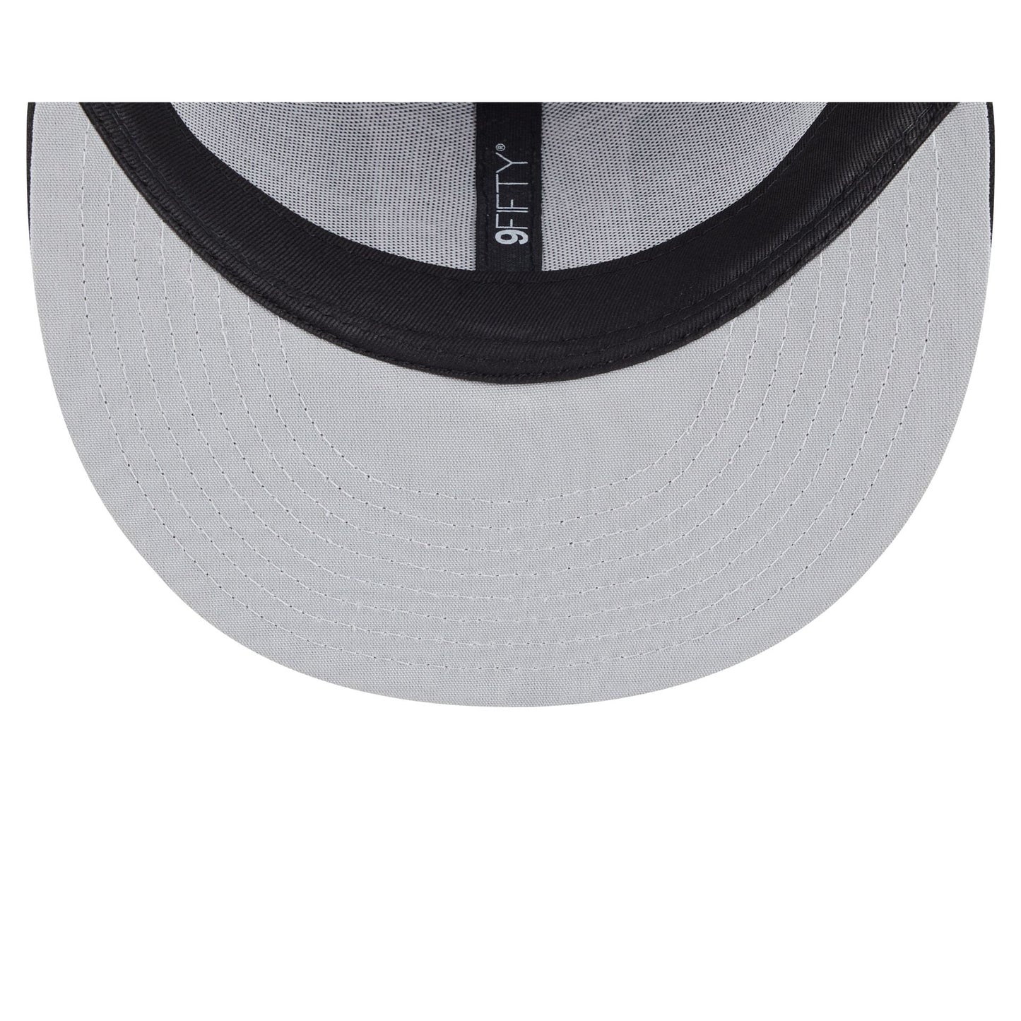 The New York Rangers Black 9FIFTY Trucker features an embroidered Rangers logo at the front panels with a matching woven team tag at a snapback closure at the rear and a gray undervisor.