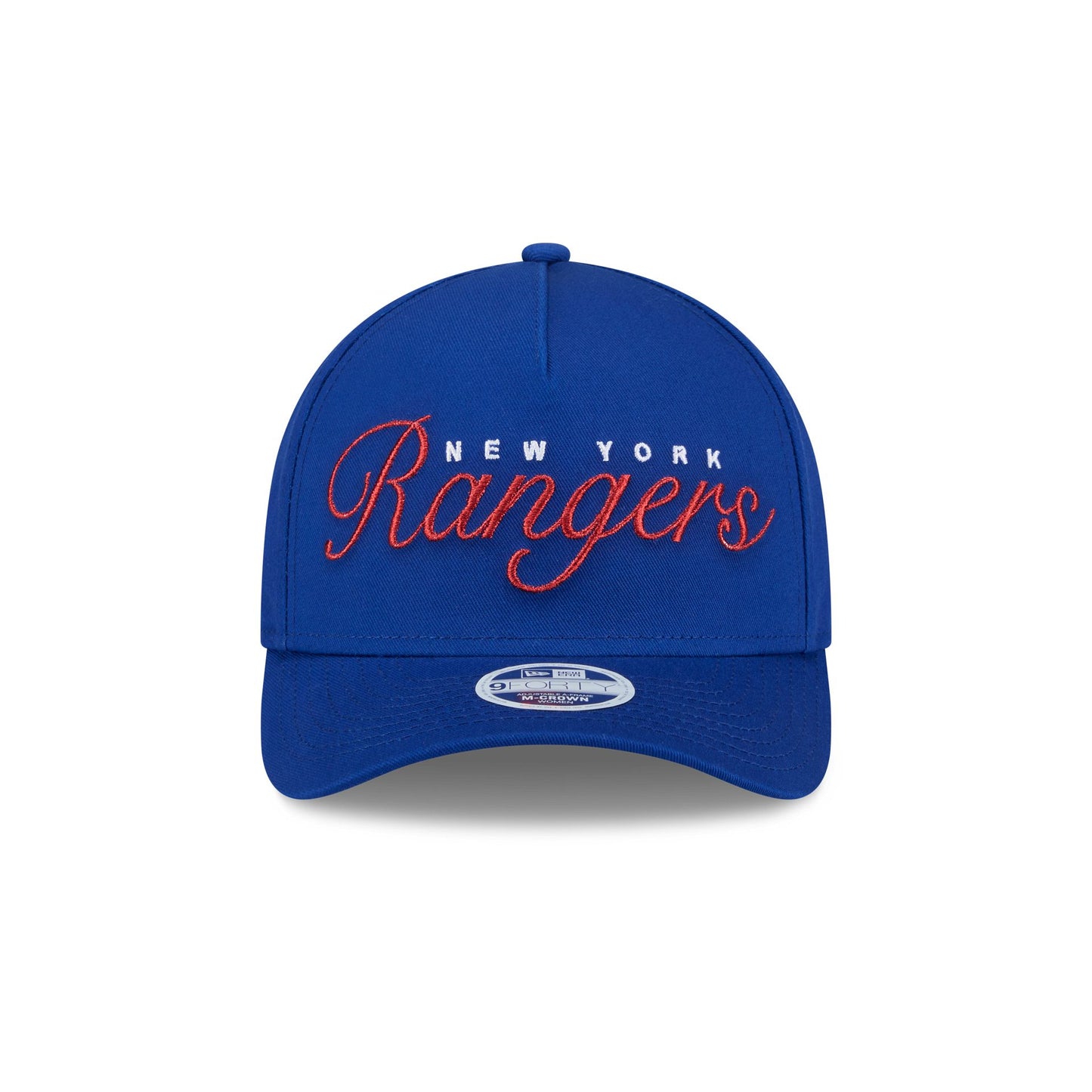 The New York Rangers Metallic Women's 9FORTY M-Crown A-Frame Snapback features an embroidered Rangers metallic script wordmark at the front panel with a snapback closure at the rear and a satin undervisor.