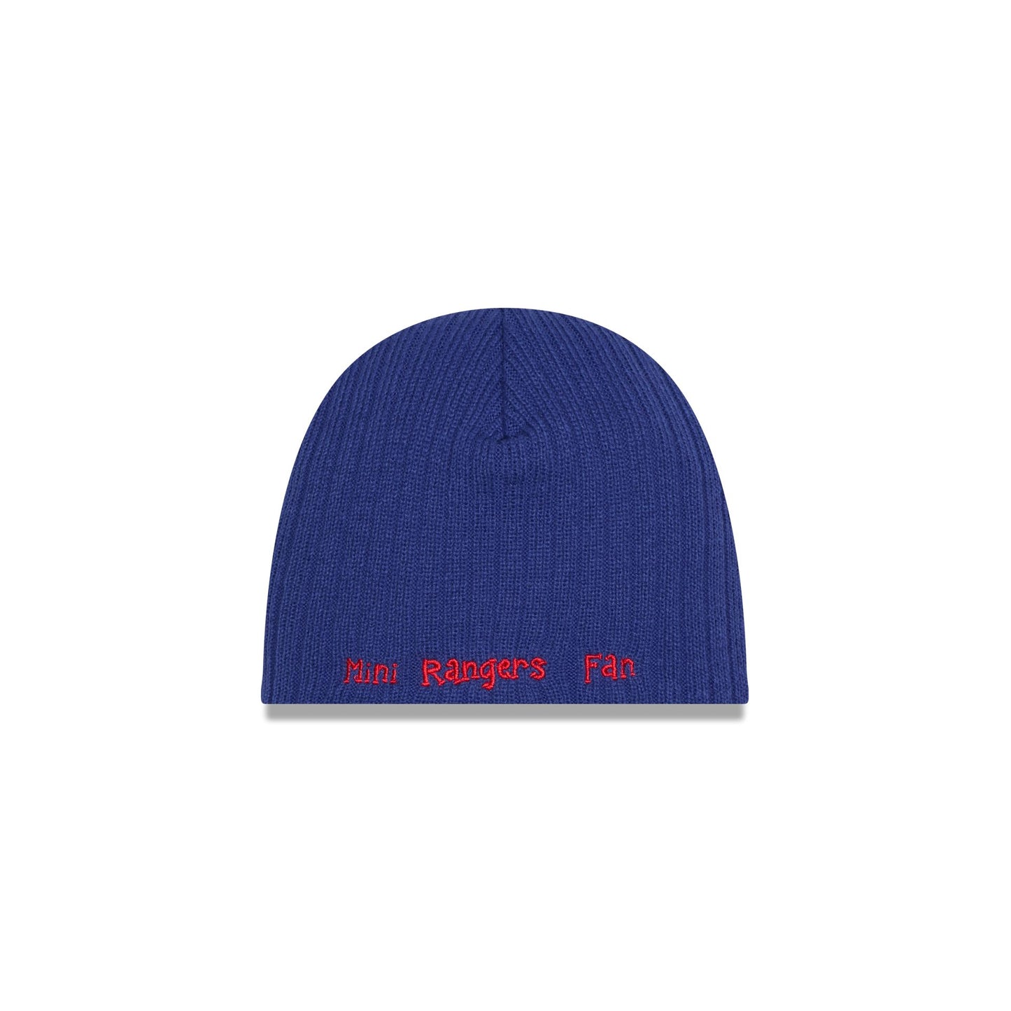 The New York Rangers Mini Fan Kids Skull Knit features an embroidered Rangers logo at the front with a mini fan script at the rear and New Era Flag at the left-wear side
