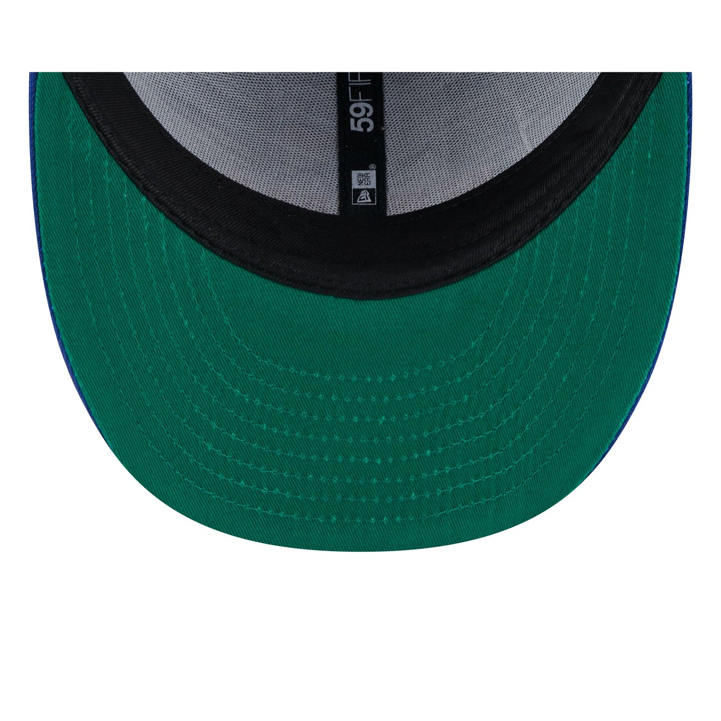 The New York Rangers NHL Pack Low Profile 59FIFTY Fitted Cap features an embroidered Rangers wordmark over a team logo at the front panels with a matching NHL Shield at the rear. Additional details include a team logo at the right-wear side with a green undervisor.