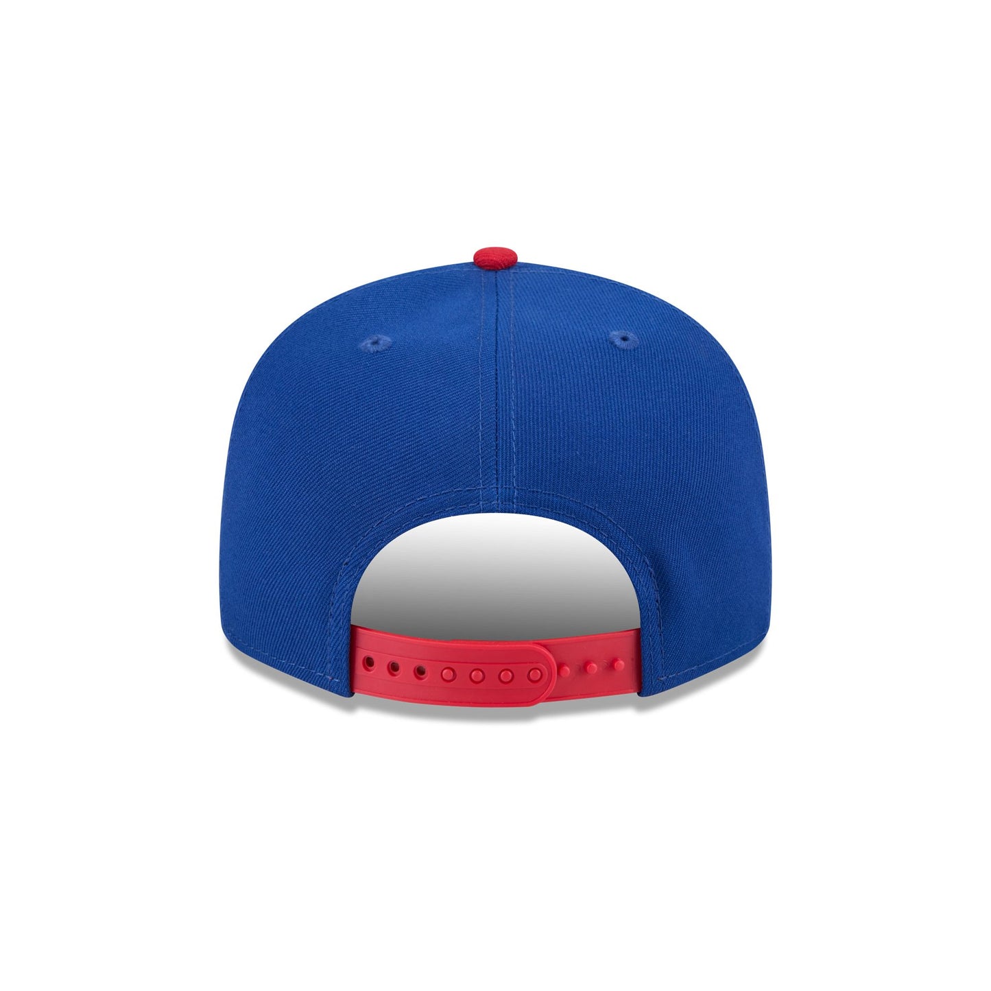The New York Rangers Team Color 9FIFTY Snapback features an embroidered Rangers logo at the front panels with a matching visor, a gray undervisor, and a snapback closure at the rear.