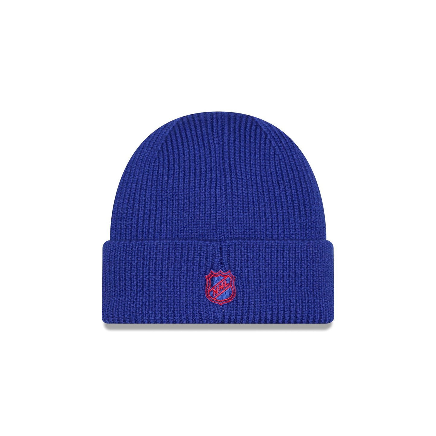 The New York Rangers Short Skull Cuff Knit Beanie features an embroidered Rangers logo at the front cuff with the NHL Shield logo at the rear.