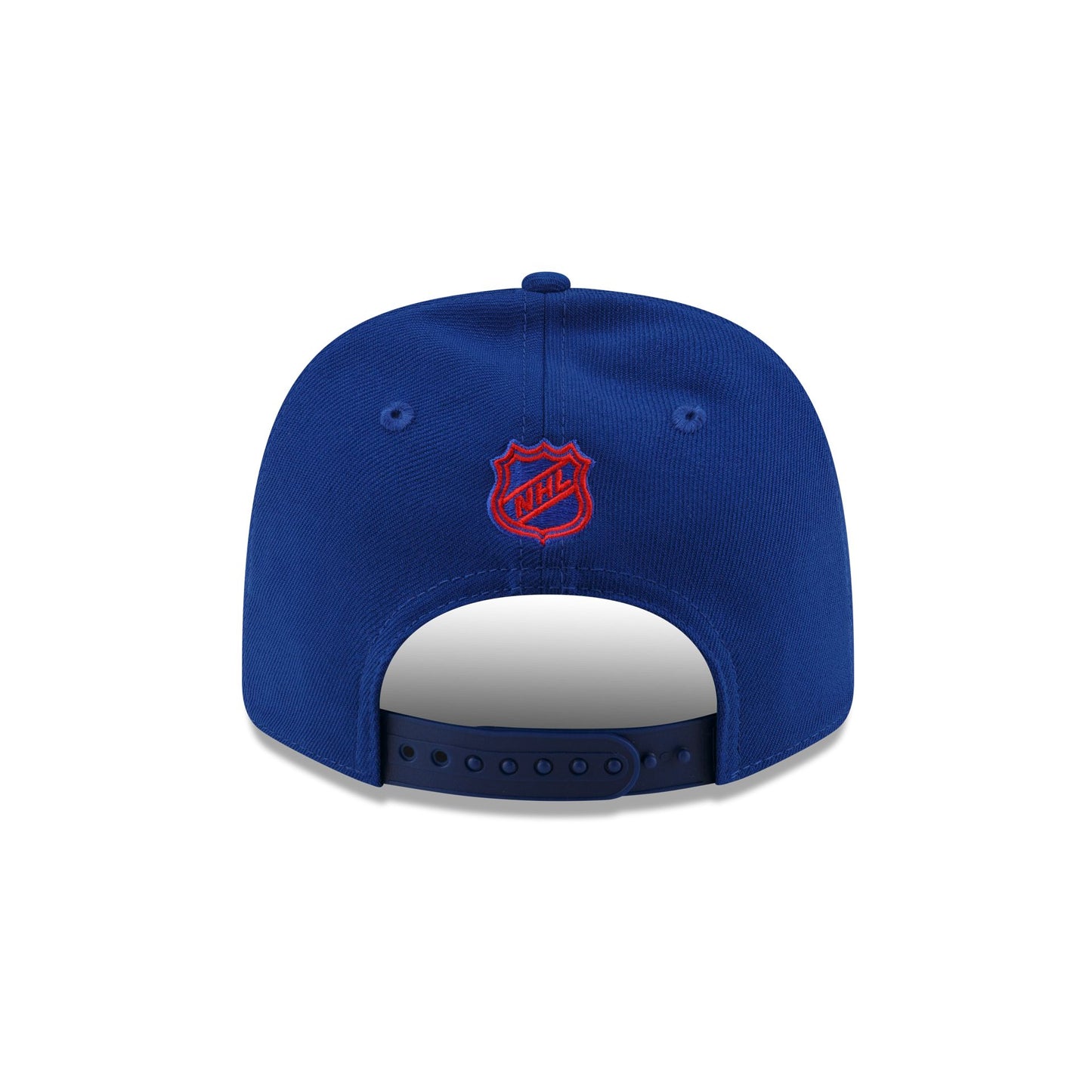 The New York Rangers Team 9SEVENTY Stretch-Snap Cap features an embroidered Rangers logo at the front panels with the NHL Shield logo above an adjustable stretch-snap closure at the rear and a gray undervisor.