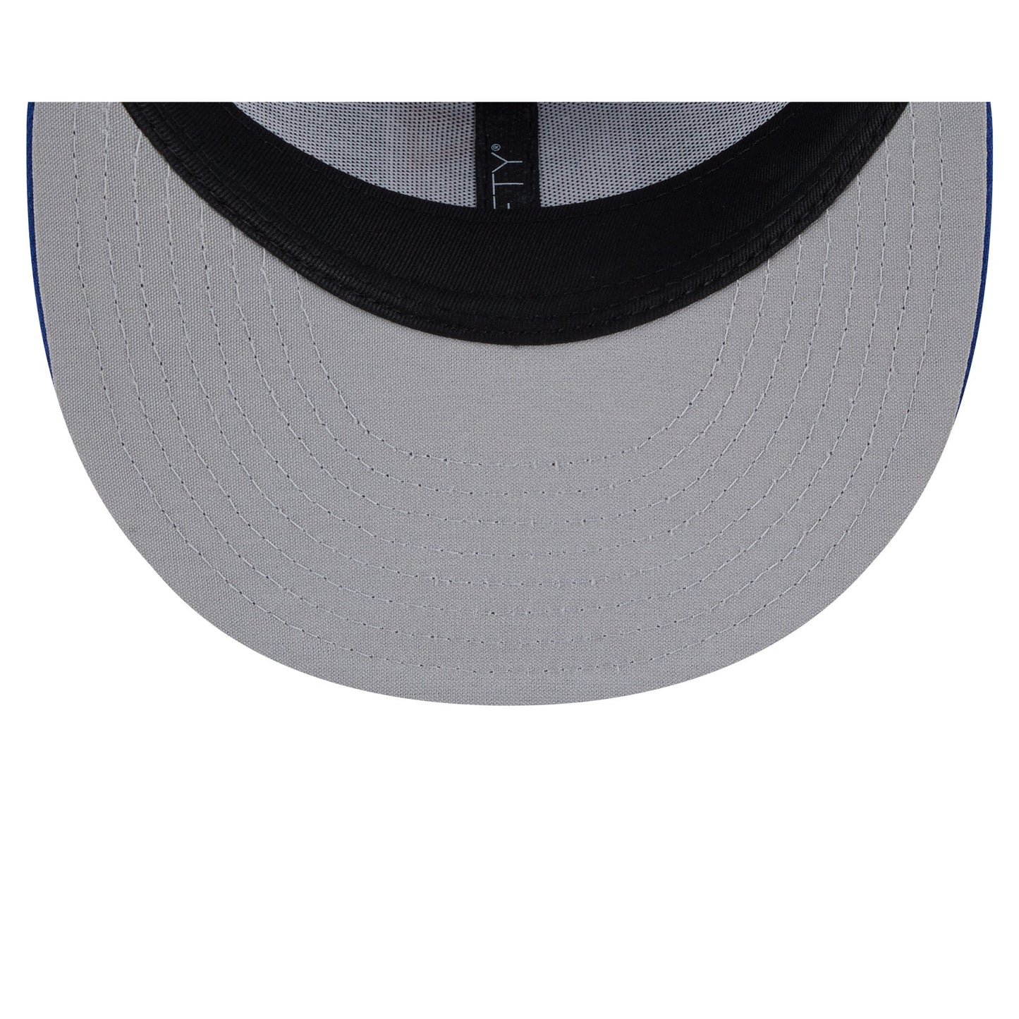 The New York Rangers Team Tag 9FIFTY Trucker features an embroidered Rangers logo at the front panels with a team tag on an snapback closure at a mesh rear and a gray undervisor.