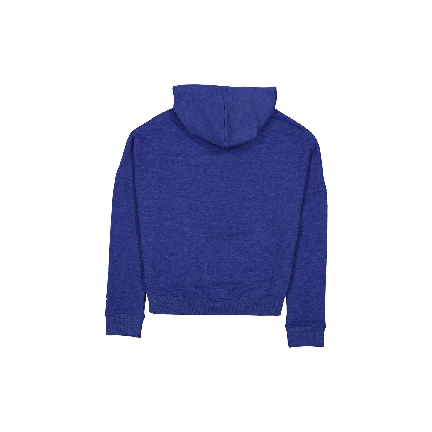 The New York Rangers Throwback Women's Glitter Hoodie features an embroidered Rangers glitter applique wordmark and logo at the front with adjustable drawstrings at the hood.