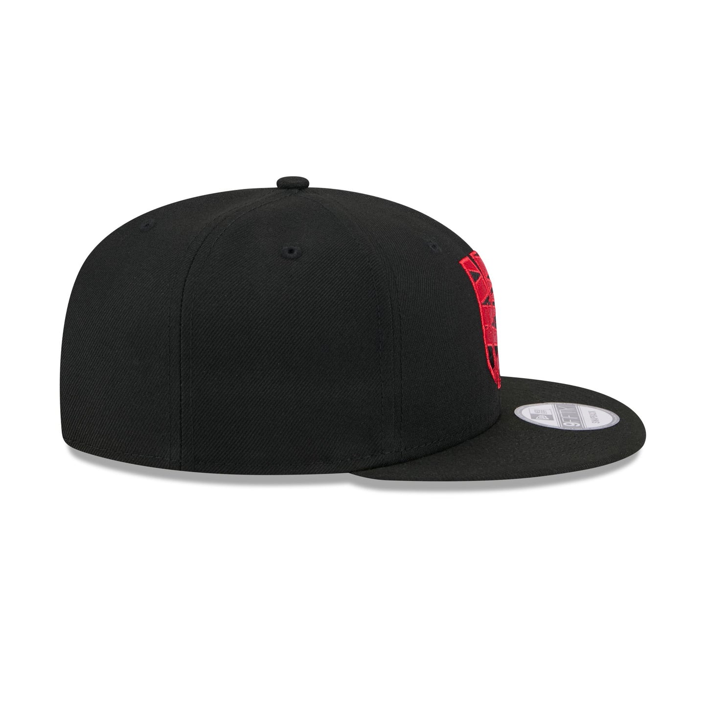 The New York Red Bulls 2024 Jersey Hook 9FIFTY Snapback features an embroidered Red Bulls logo at the front panels with a team wordmark above a snapback closure at the rear and a black undervisor.