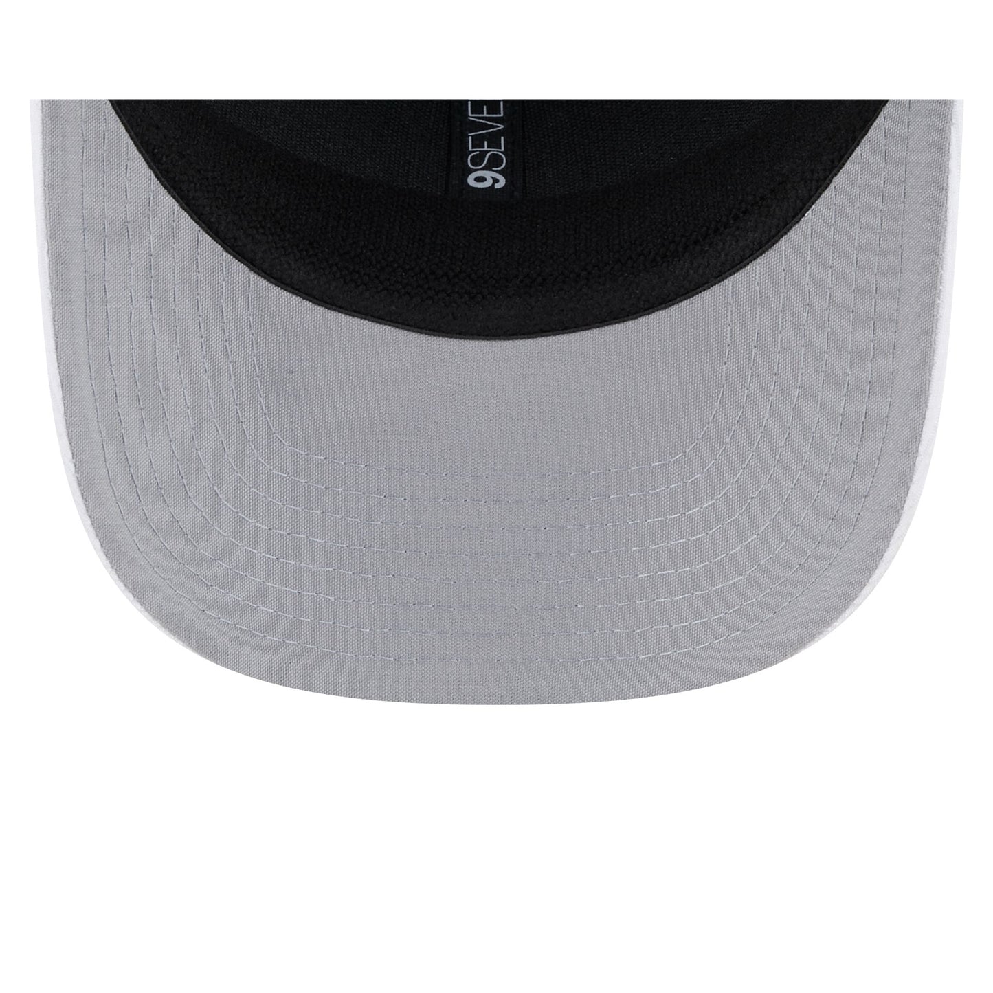 The New York Yankees 2025 Batting Practice 9SEVENTY Trucker Hat features an embroidered Yankees logo at the front panels with a mesh back, a snapback closure at the rear, and a gray undervisor.