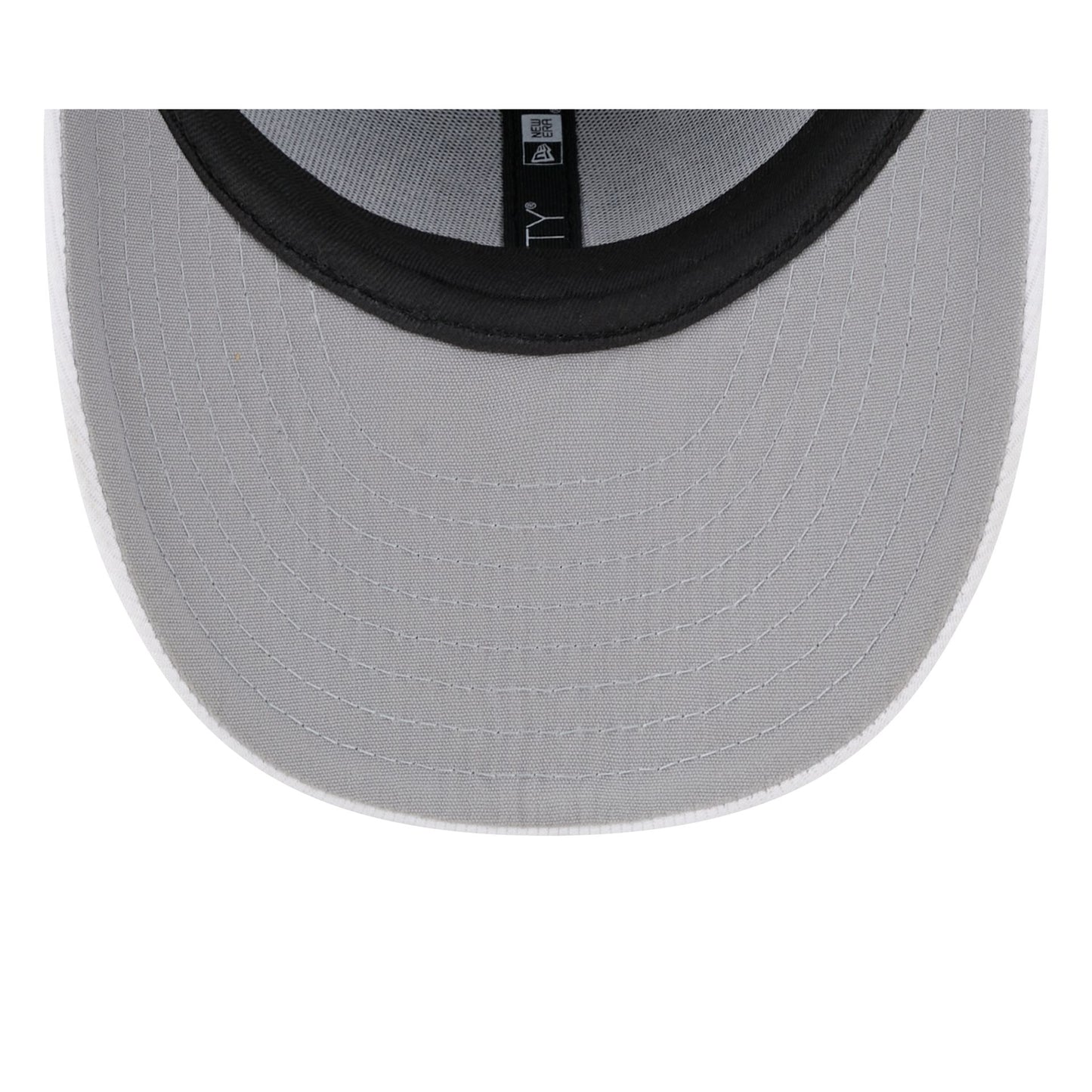 The New York Yankees 2025 Batting Practice Low Profile 59FIFTY Fitted Cap features an embroidered Yankees logo at the front panels with a matching MLB Batterman logo at the rear. Additional details include a pivot knit fabrication, a white visor, and a gray undervisor.