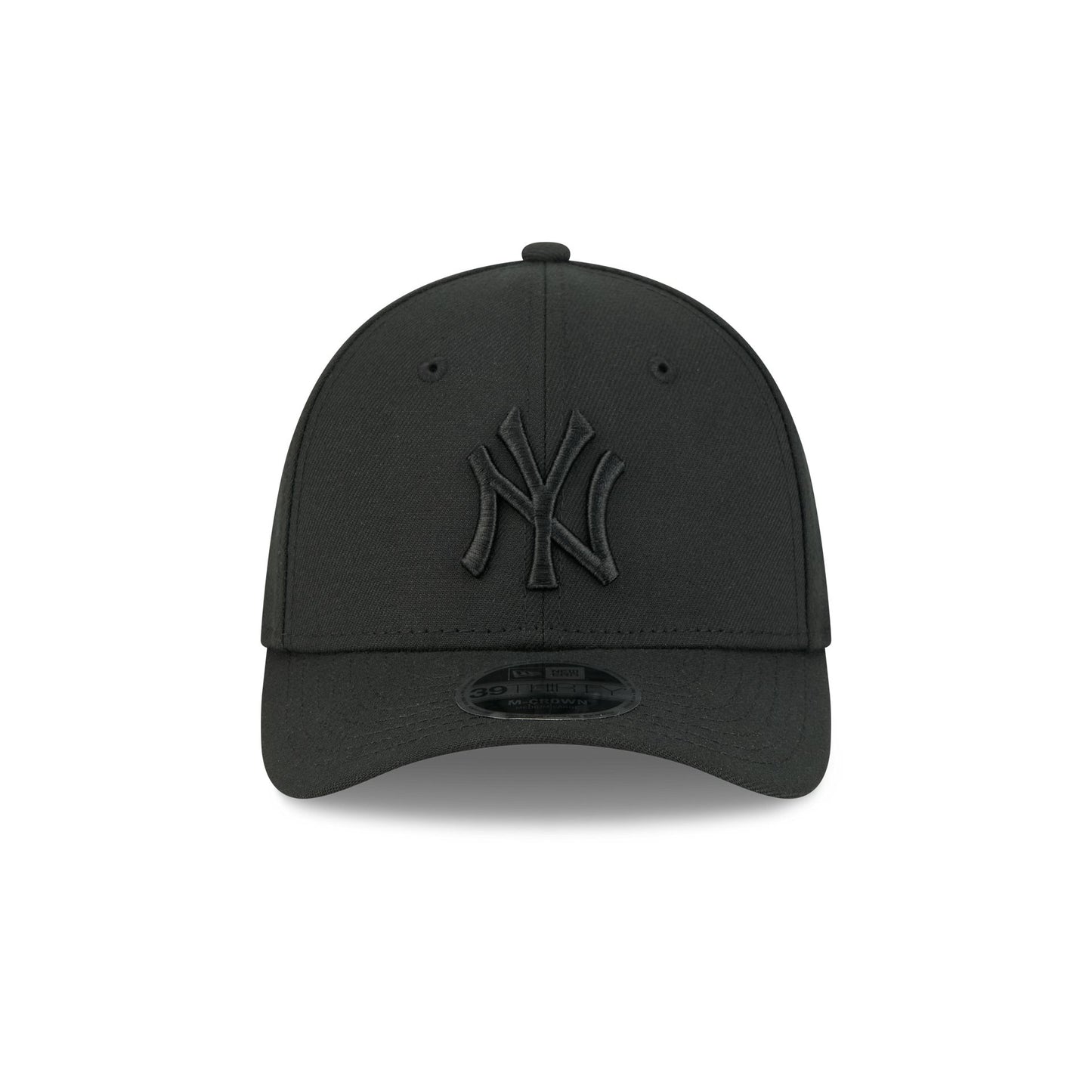 The New York Yankees Black and White 39THIRTY M-Crown Stretch Fit Cap features an embroidered Yankees logo at the front panels with a matching team wordmark at the rear and a gray undervisor. Additional details include a Performance Stretch sweatband and a New Era Flag at the left-wear side.