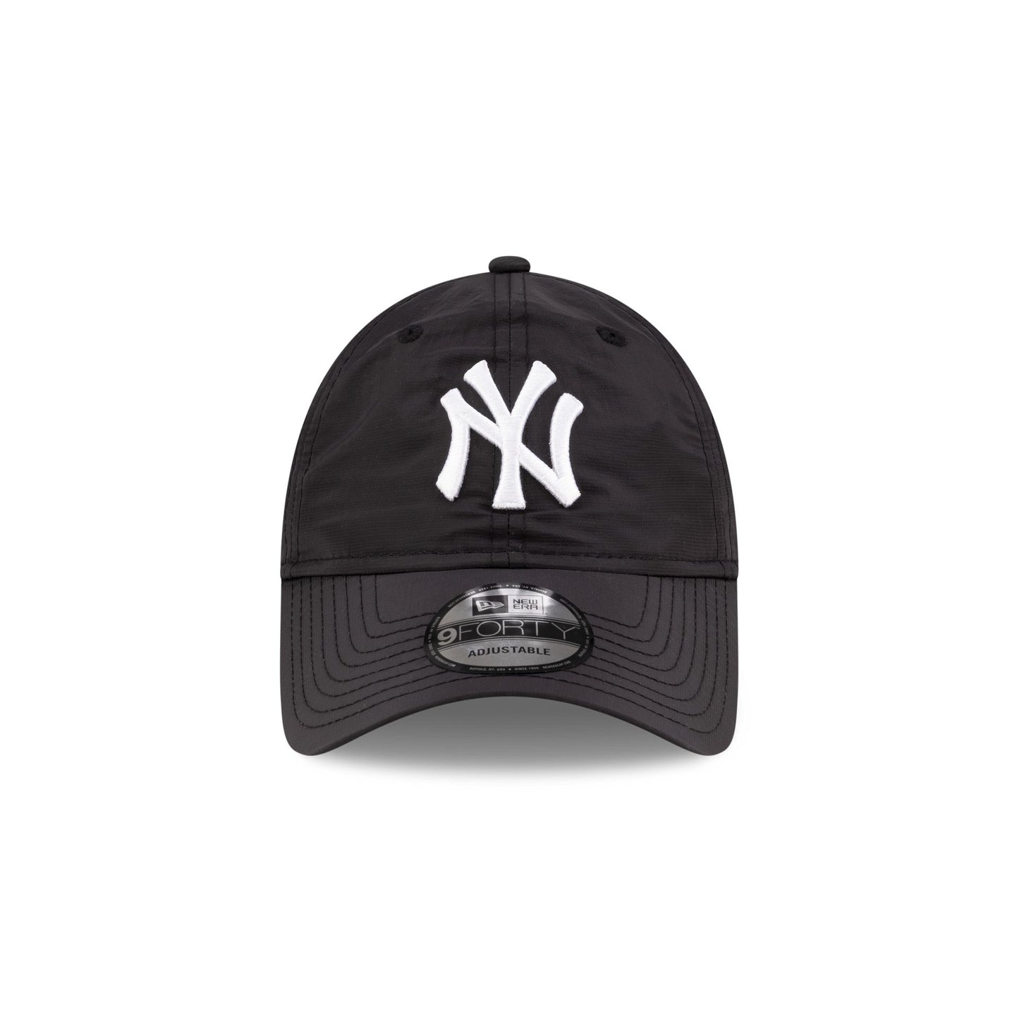 The New York Yankees Black Nylon 9FORTY Adjustable Cap features an embroidered Yankees logo at the front panels with a nylon fabrication throughout and an adjustable D-Ring closure at the rear.