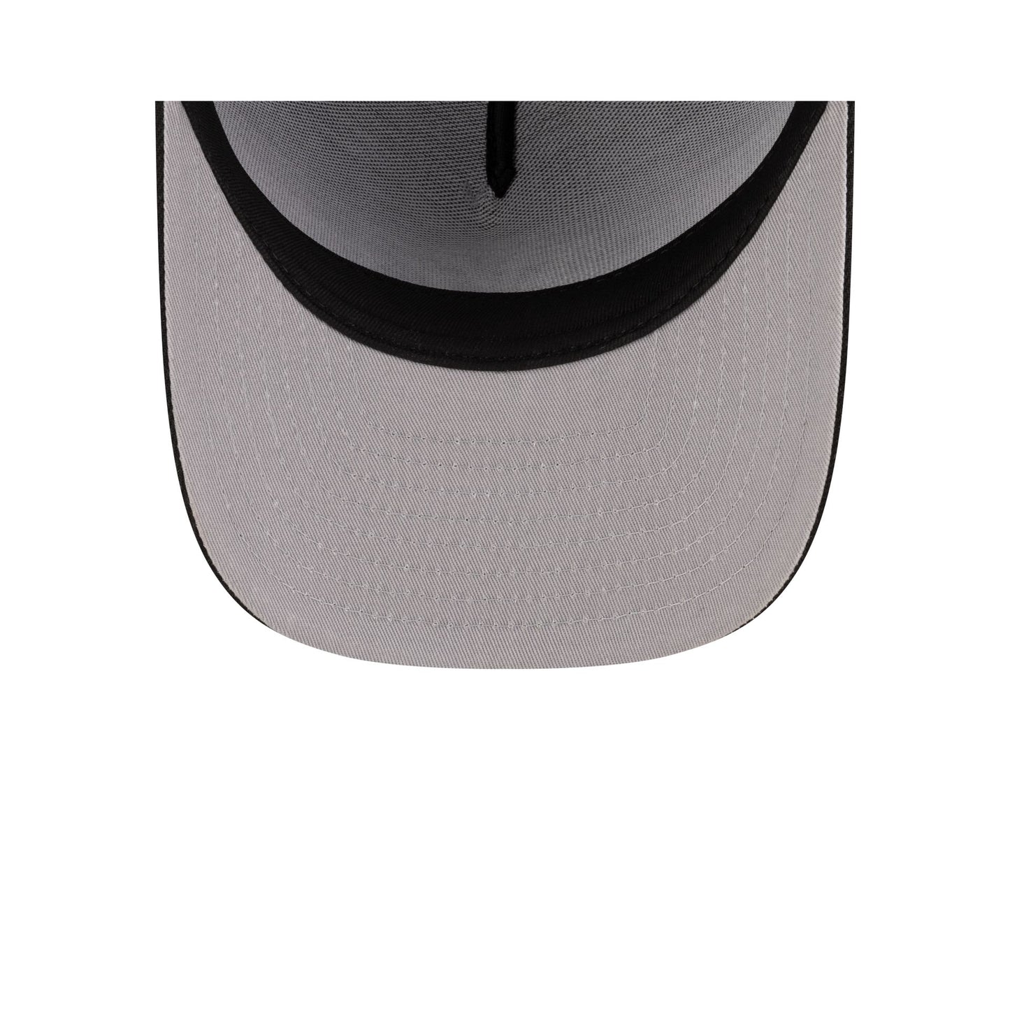 The New York Yankees Black Script Safety Pin 59FIFTY A-Frame Fitted Cap features an embroidered Yankees logo at the front panels with a matching MLB Batterman logo at the rear. Additional details include a removeable script team name pin, a pre curved visor, and a gray undervisor.