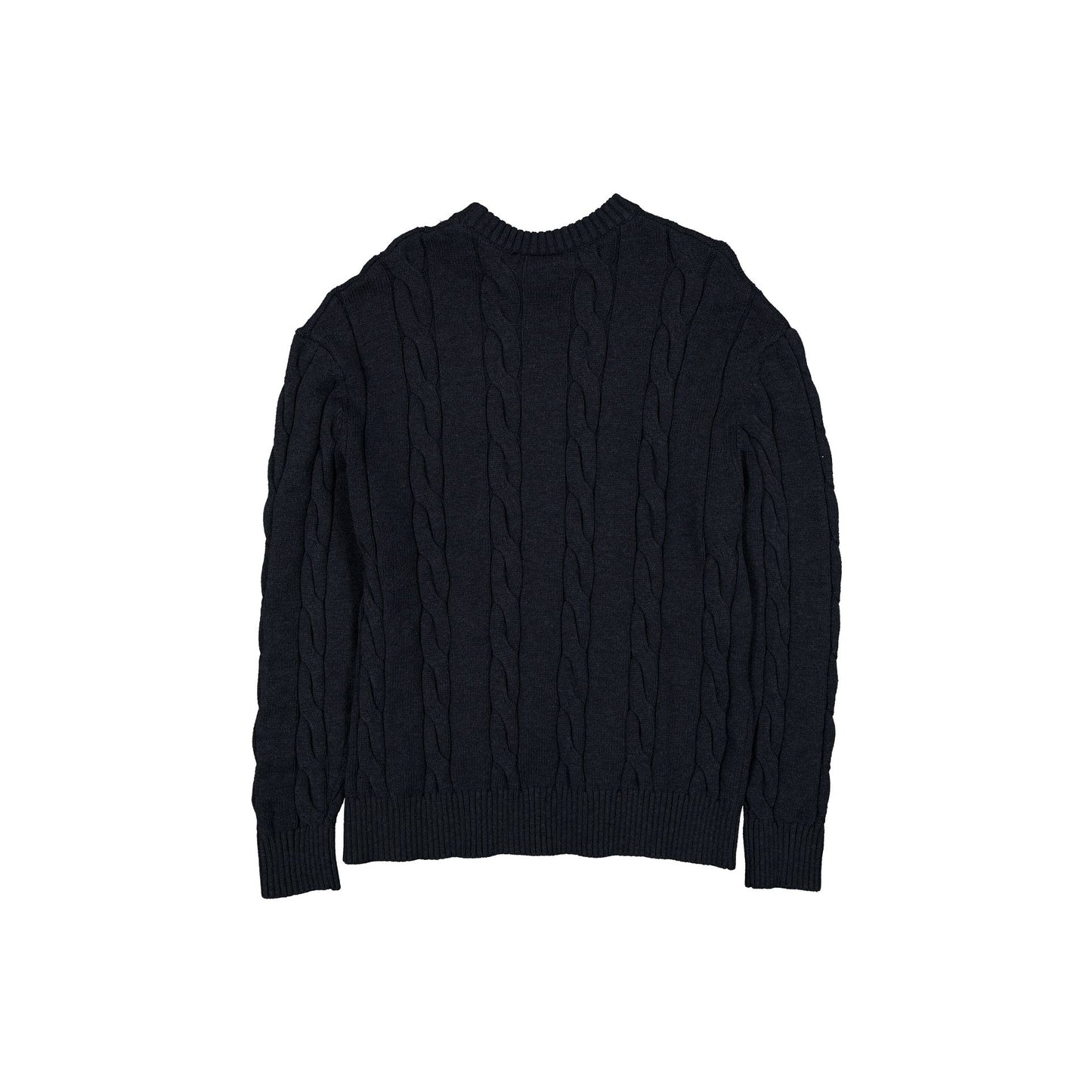 The New York Yankees Cable Knit Sweater features an embroidered Yankees logo at the left chest with a cable knit stitch throughout.