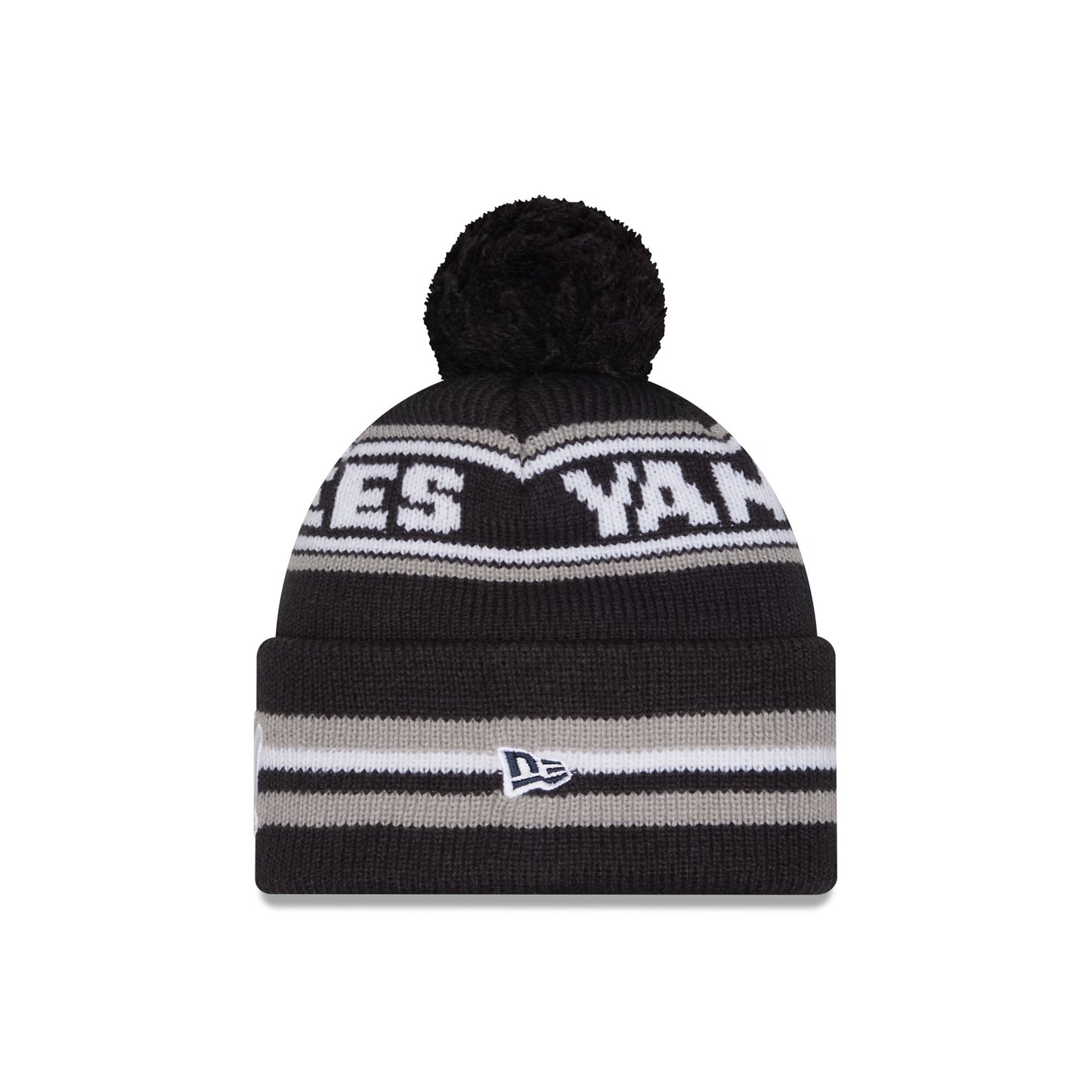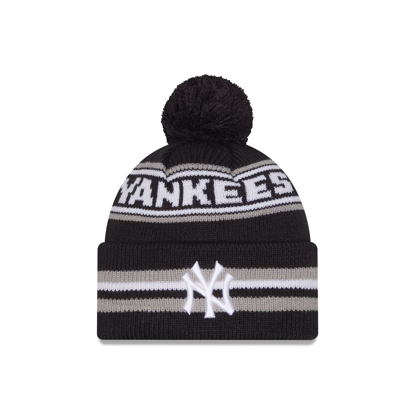 The New York Yankees Classic Pom Knit Hat features an embroidered Yankees logo at the front cuff with a wordmark at the crown and a one-time removable pom.
