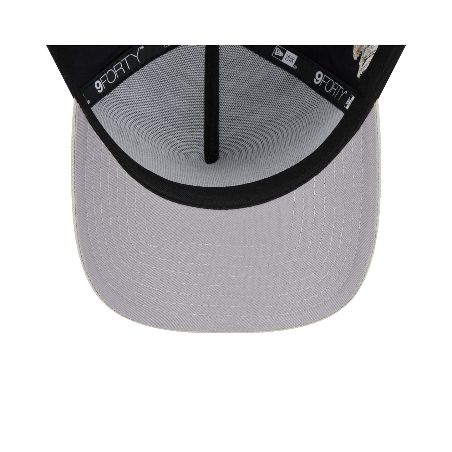 The New York Yankees Coop Logo Select 9FORTY A-Frame Snapback features an embroidered Yankees Cooperstown logo at the front panels with a matching alternate team wordmark above a snapback closure at the rear. Additional details include a 1951 World Series patch at the right-wear side and a gray undervisor.
