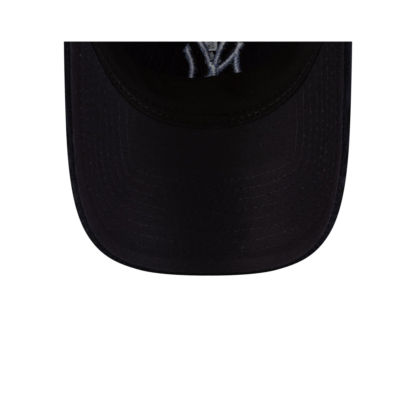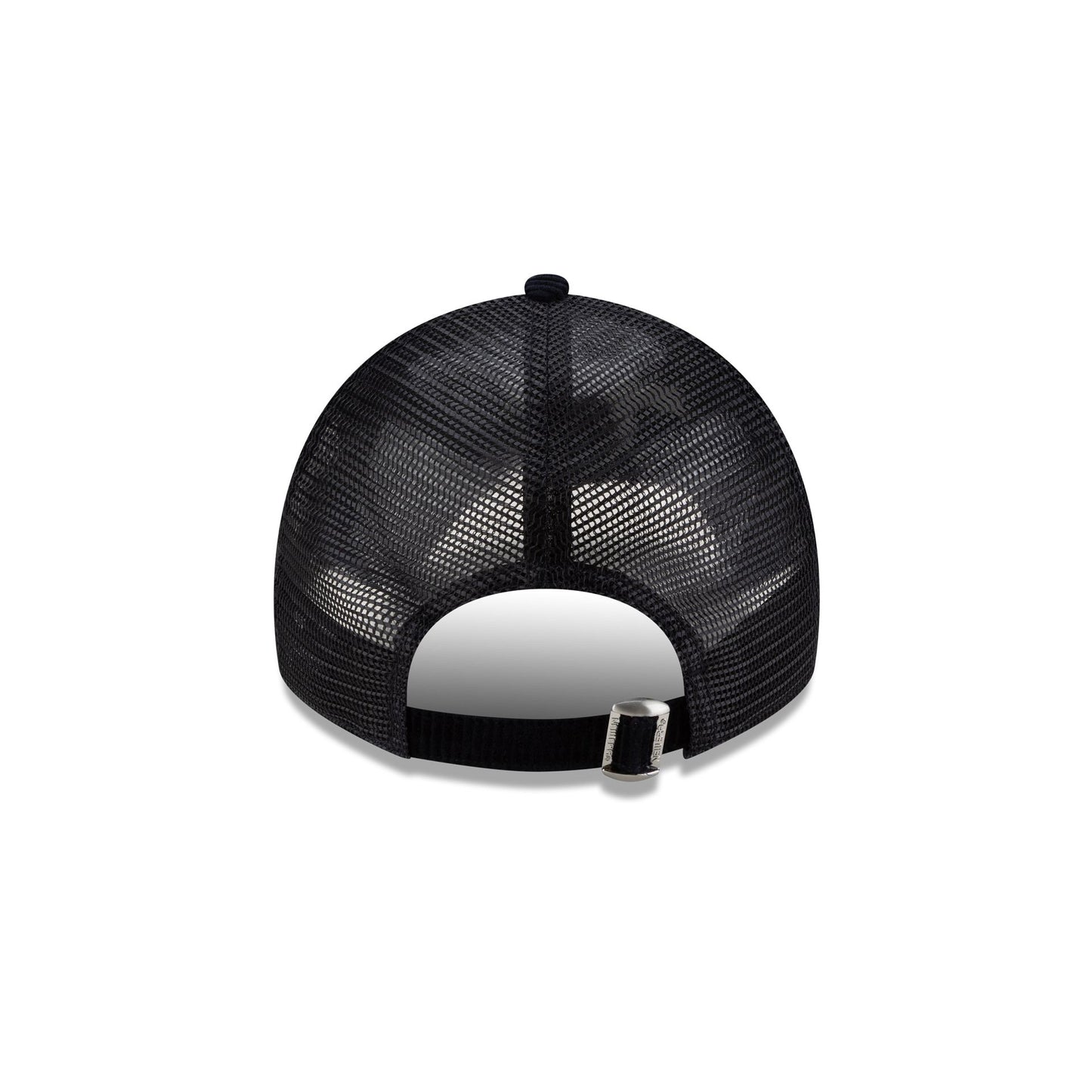 The New York Yankees Cord 9TWENTY Trucker features an embroidered Yankees logo at the front panels with a matching MLB Batterman logo above an adjustable D-Ring closure at the rear and a navy undervisor.