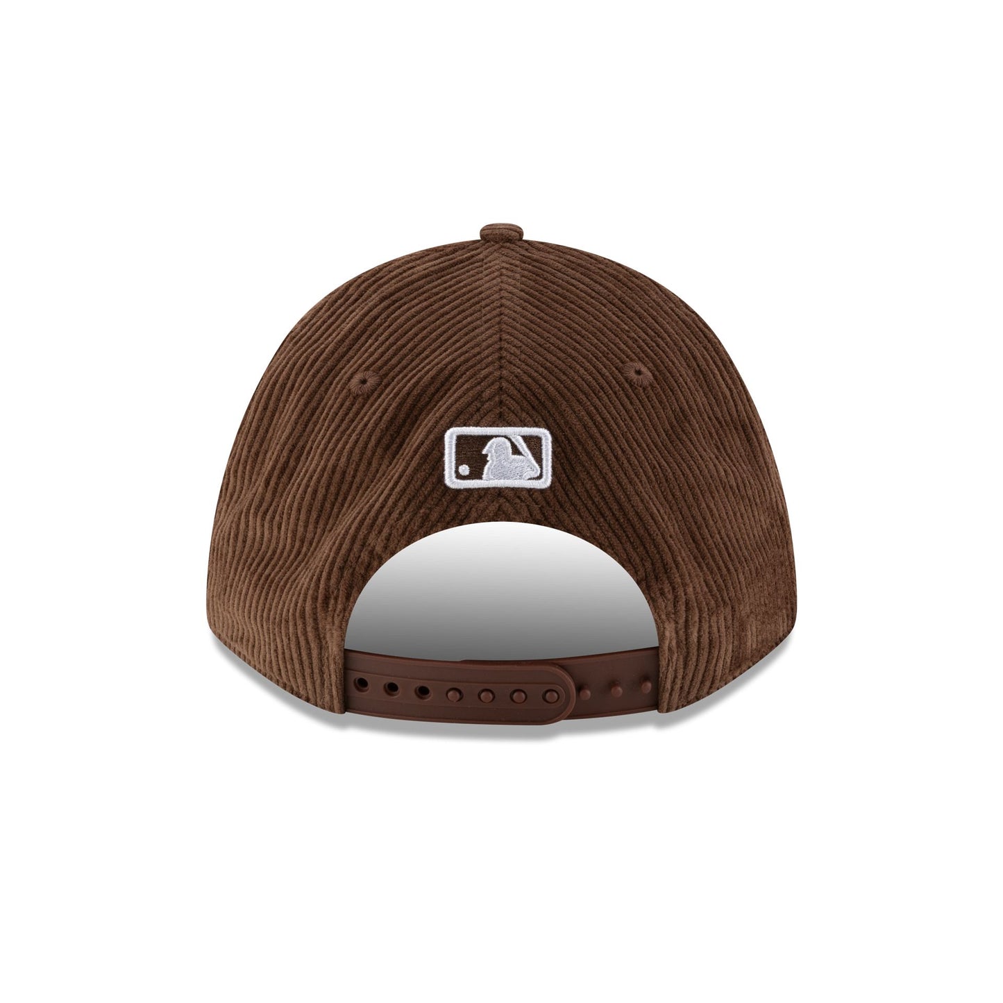 The New York Yankees Cord Brown 9FORTY M-Crown Snapback features an embroidered Yankees logo at the front panels with a matching MLB Batterman logo above a snapback closure at the rear and a brown undervisor.