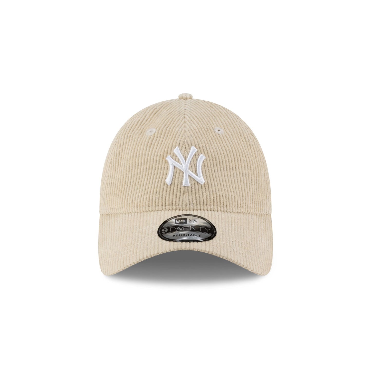 The New York Yankees Cord Stone 9TWENTY Adjustable Cap features an embroidered Yankees logo at the front panels with a matching MLB Batterman logo above an adjustable D-Ring closure at the rear and a beige undervisor.