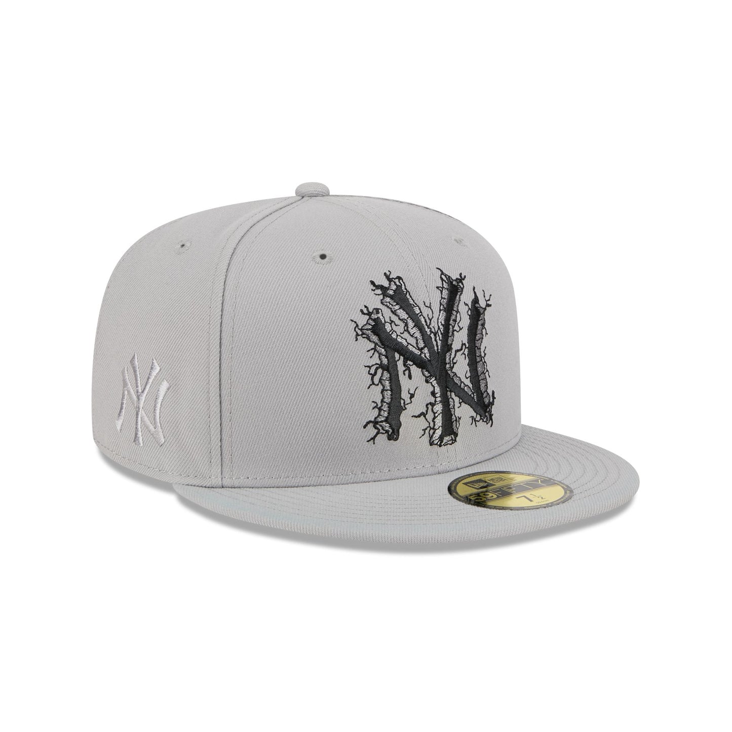 The New York Yankees Cracked Cement 59FIFTY Fitted Cap features an embroidered crackle effect Yankees logo at the front panel with a matching MLB Batterman logo at the rear, a monochromatic team logo at the right-wear side, and a green undervisor.