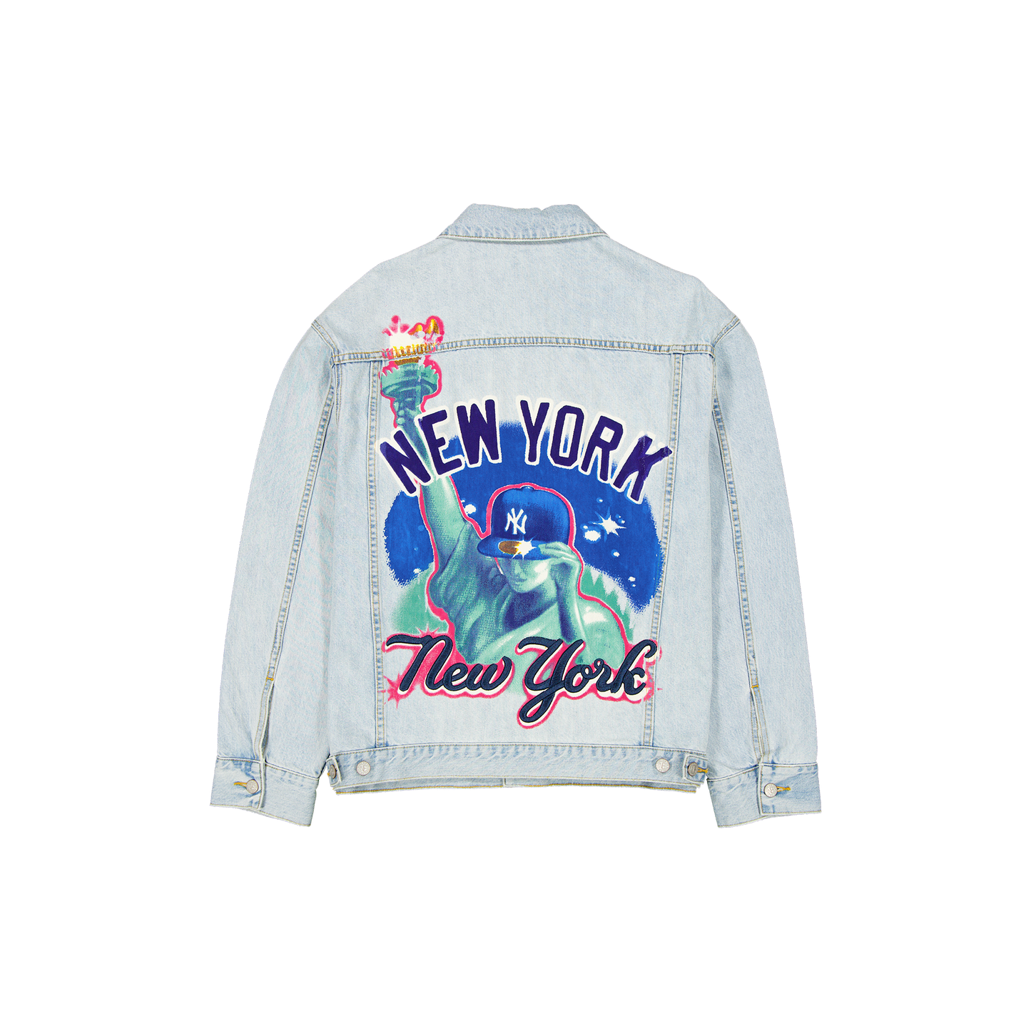 The New Era Branded New York Yankees Denim Trucker Jacket features: