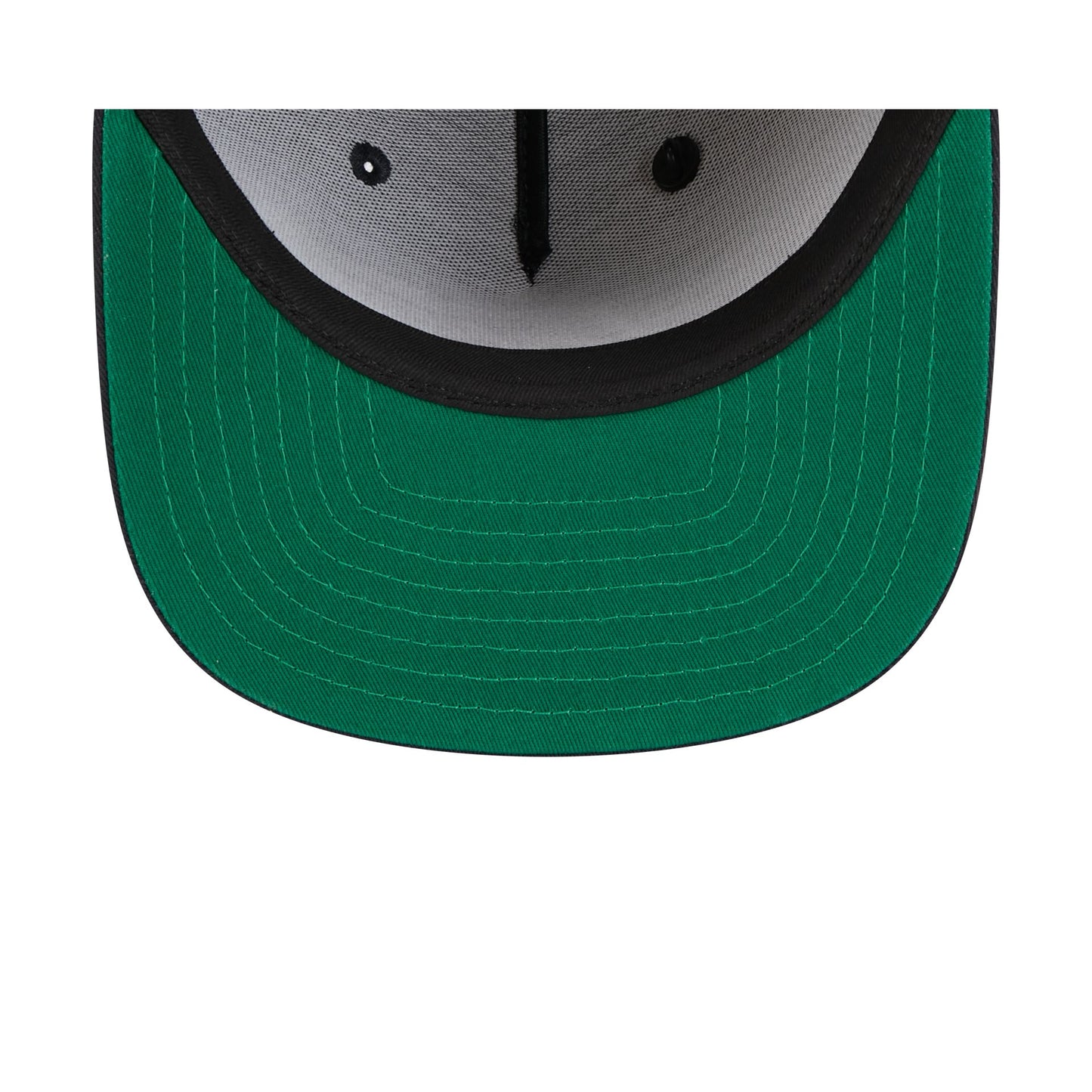 The New York Yankees Derek Jeter 9FIFTY A-Frame Snapback features the player's name embroidered at the front panels with a team pin at the top left panel. Additional details include a snapback closure at the rear and a green undervisor.