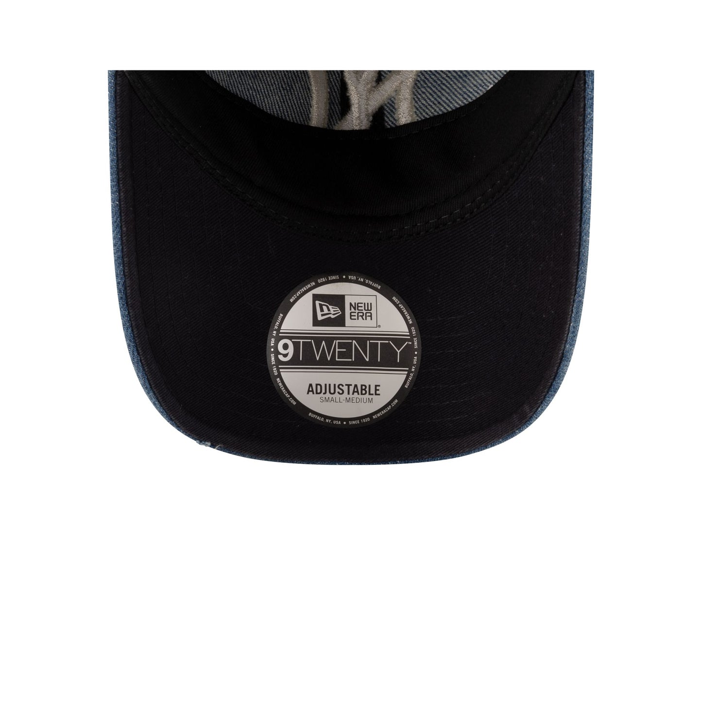 The New York Yankees Distressed Light Denim 9TWENTY Adjustable Cap features an embroidered Yankees logo at the front panels with an adjustable D-Ring closure at the rear and a black undervisor.