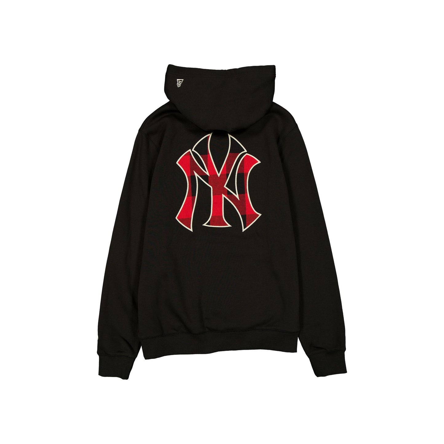 The New York Yankees Evergreen Check Hoodie features an embroidered applique Yankees checkered wordmark at the front with a matching interior hood and logo at the rear. Additional details include kangaroo pockets and adjustable drawstrings at the hood.