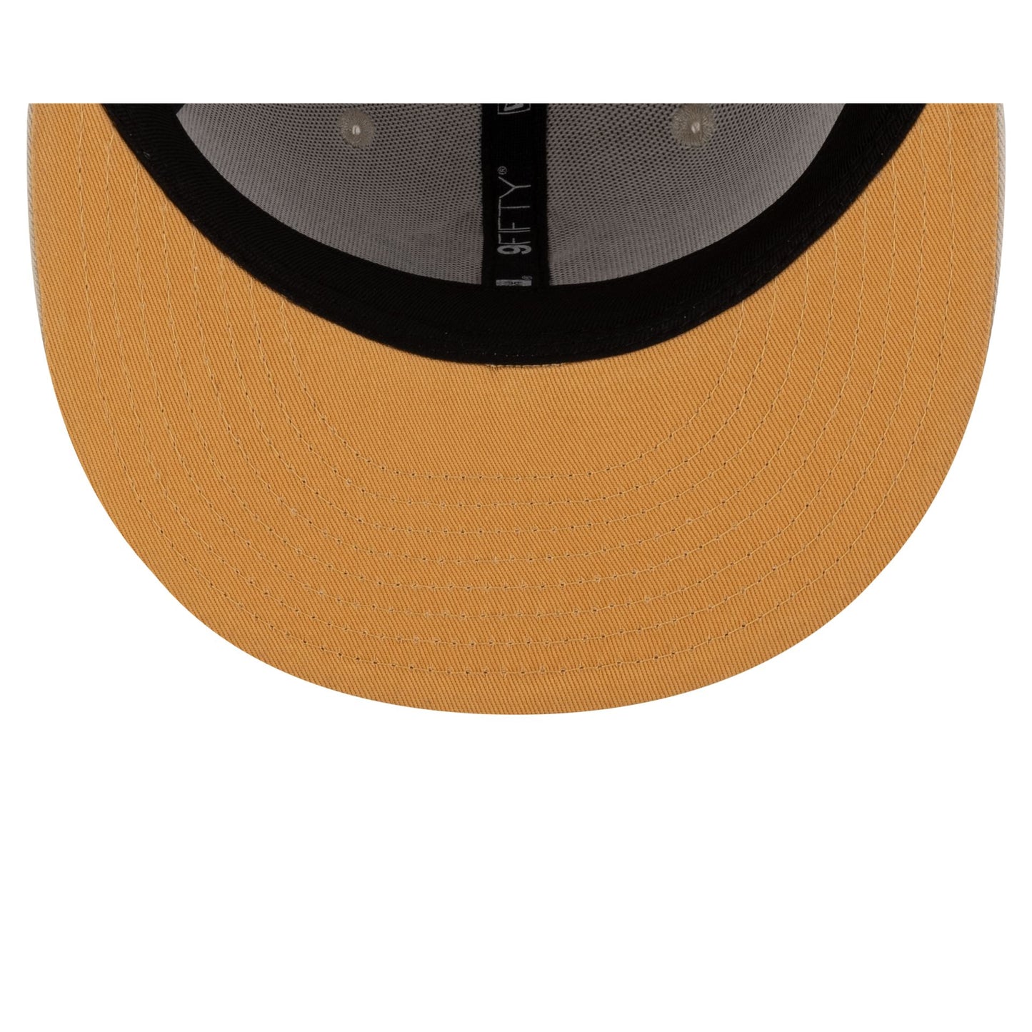 The New York Yankees Floral Ivory 9FIFTY Snapback features an embroidered Yankees logo and flower intertwined at the front panels with a matching floral patch at the right-wear side. Additional details include a team wordmark above a snapback closure at the rear with a pre-curved visor and a gold undervisor.