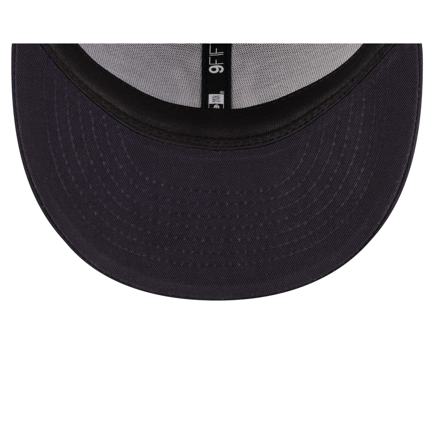 The New York Yankees Floral Navy Low Profile 9FIFTY Snapback features an embroidered Yankees logo at the front panels with floral embroidery details at the visor and rear arch above the snapback closure at the rear.