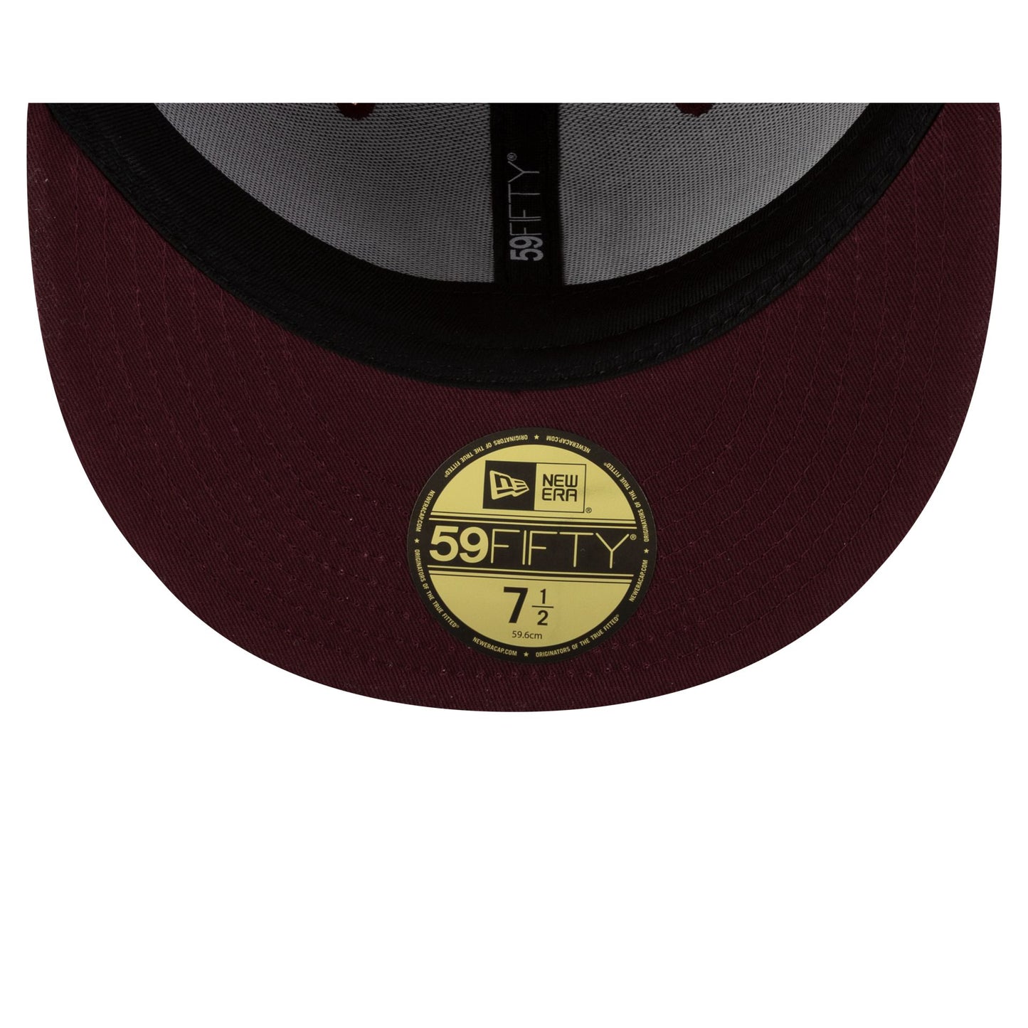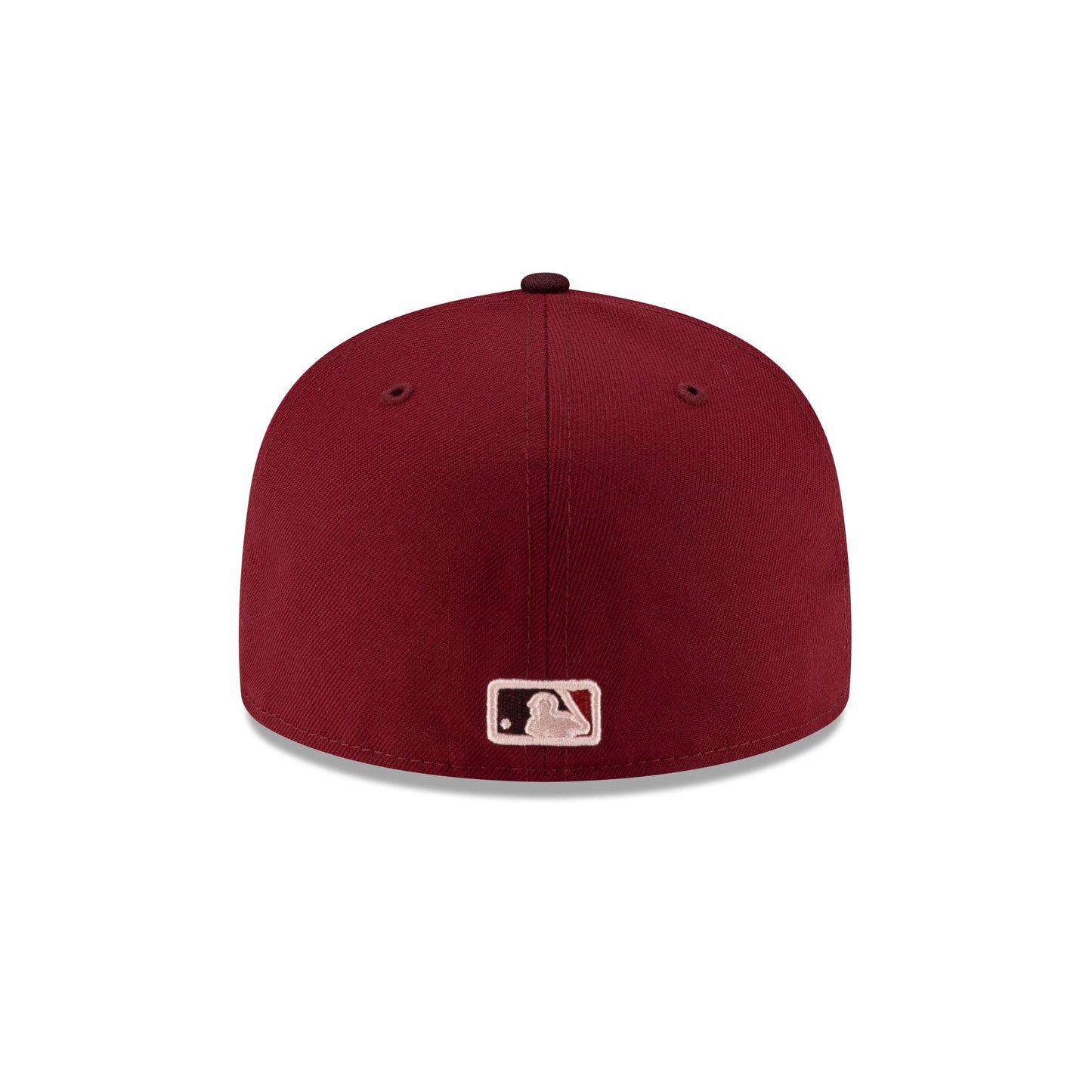 The New York Yankees Flourishes 59FIFTY Fitted Cap features an embroidered Yankees logo at the front panels with a matching MLB Batterman logo closure at the rear. Additional details include a 1923 World Series team patch at the right-wear side with flourish details at the visor and a maroon undervisor.