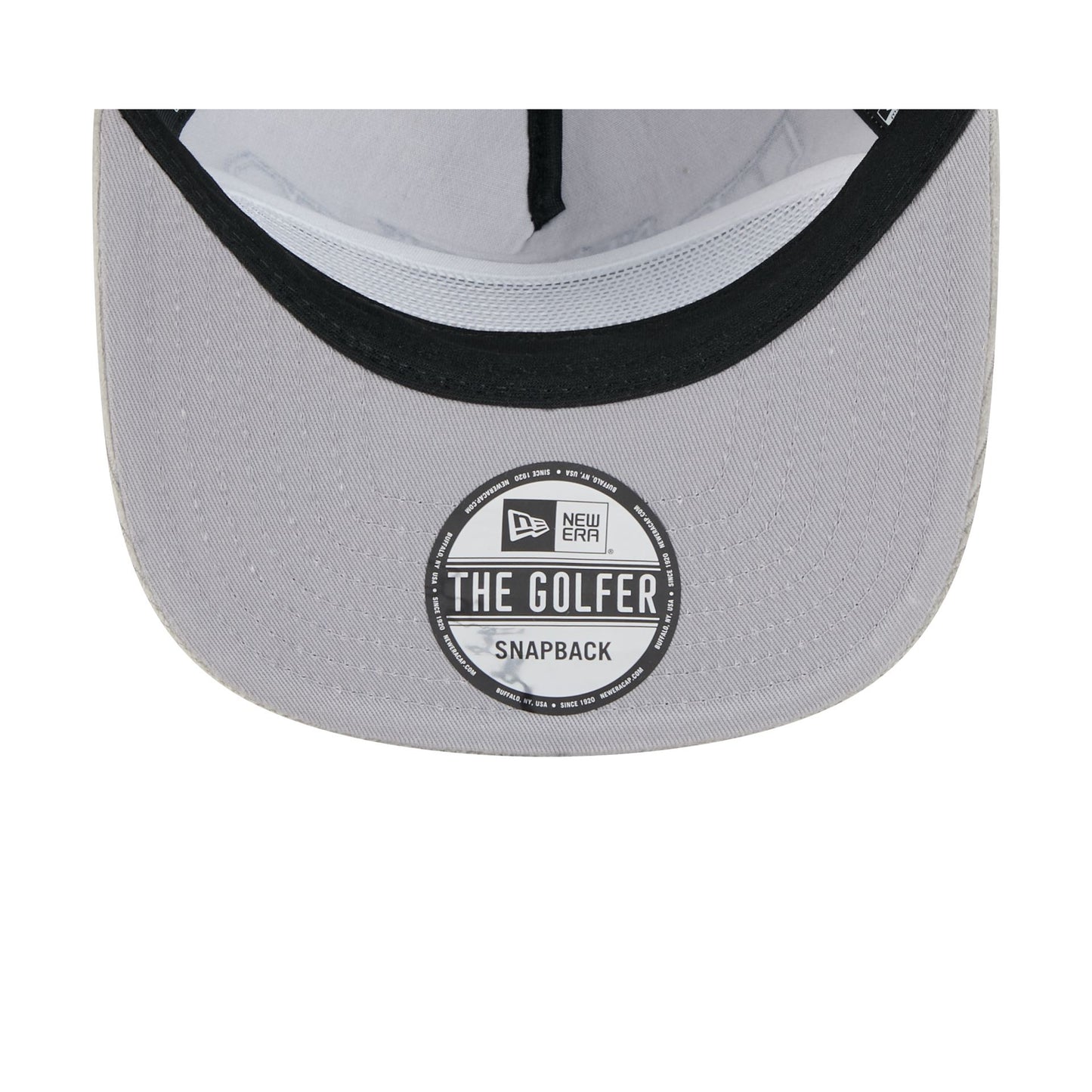 The New York Yankees Gray Cord Golfer features an embroidered Yankees wordmark and logo at the front panels against a gray corduroy fabrication throughout. Additional details include a matching snapback closure at the rear and a gray undervisor.