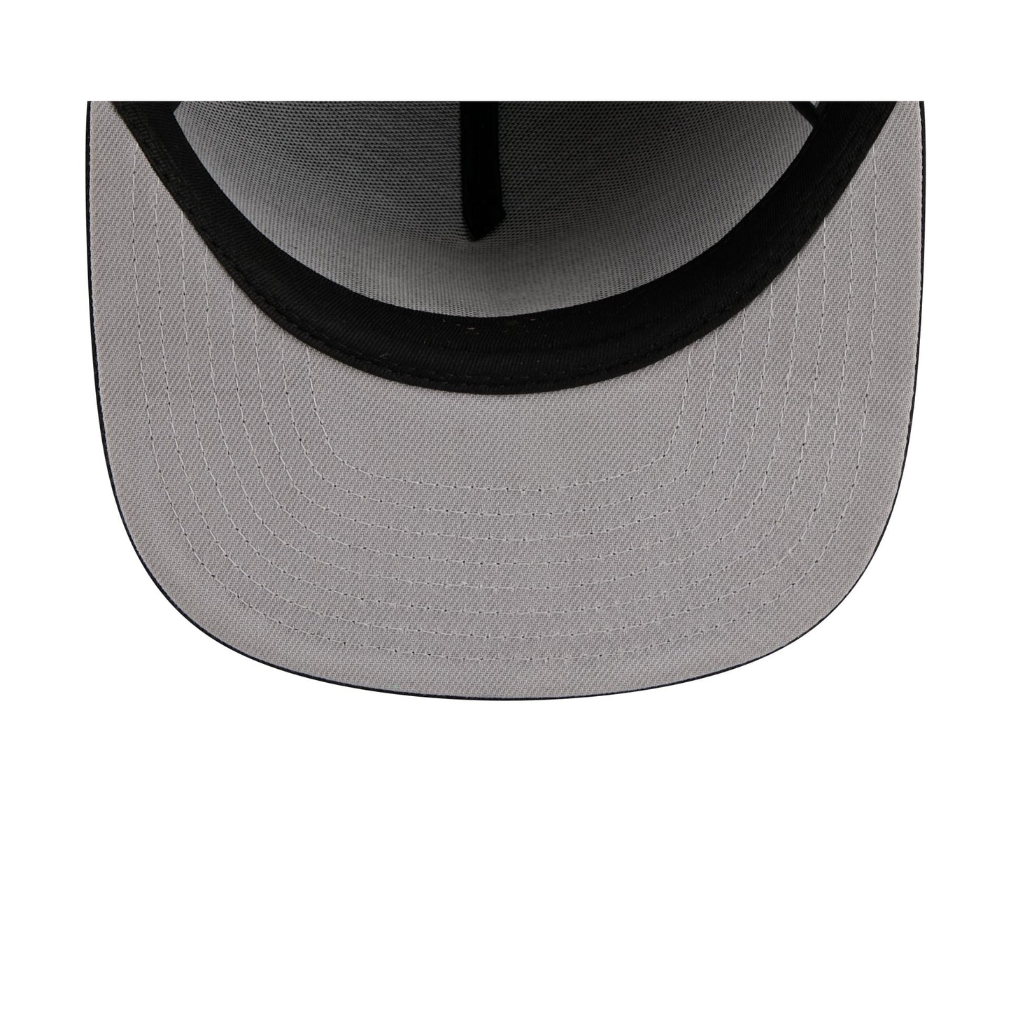 The New York Yankees Grunge Plaid 9FIFTY A-Frame Adjustable Cap features an embroidered Yankees logo at the front panel with an alternative logo above an adjustable metal clasp closure at the rear, a black visor, and a gray undervisor.