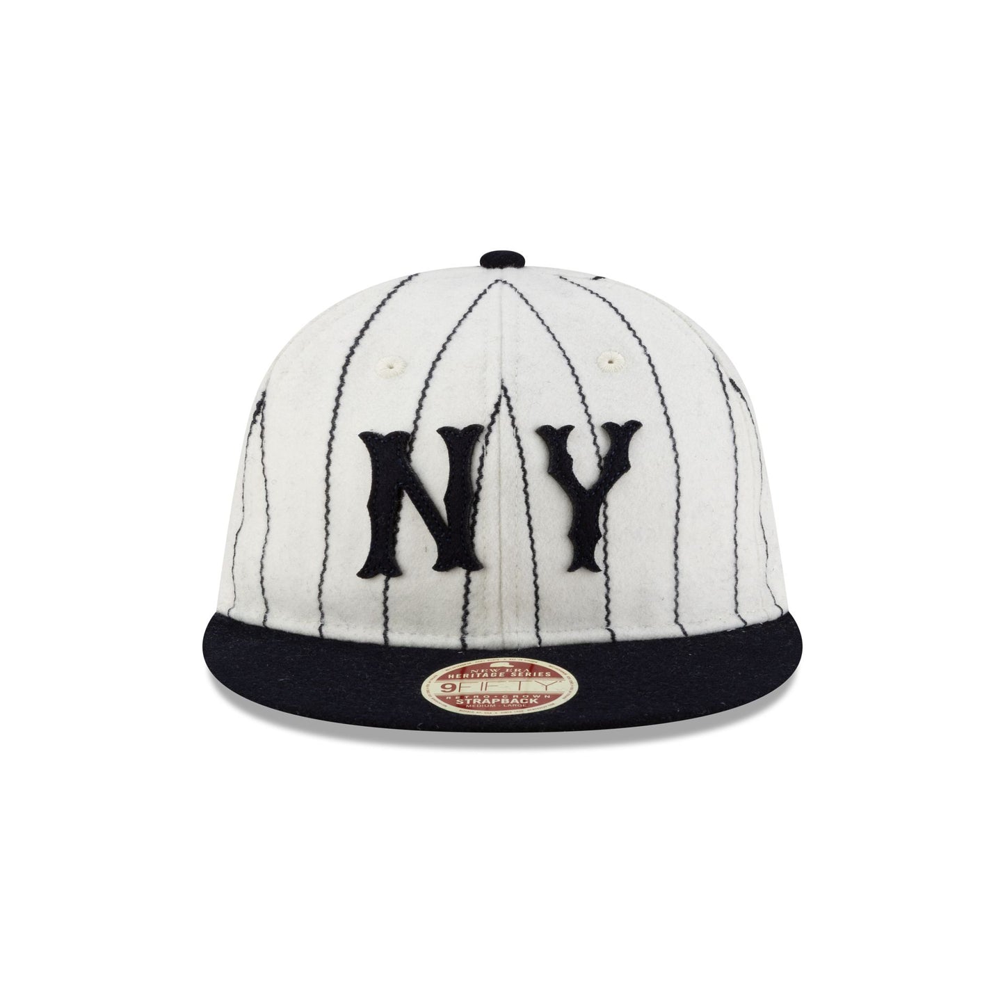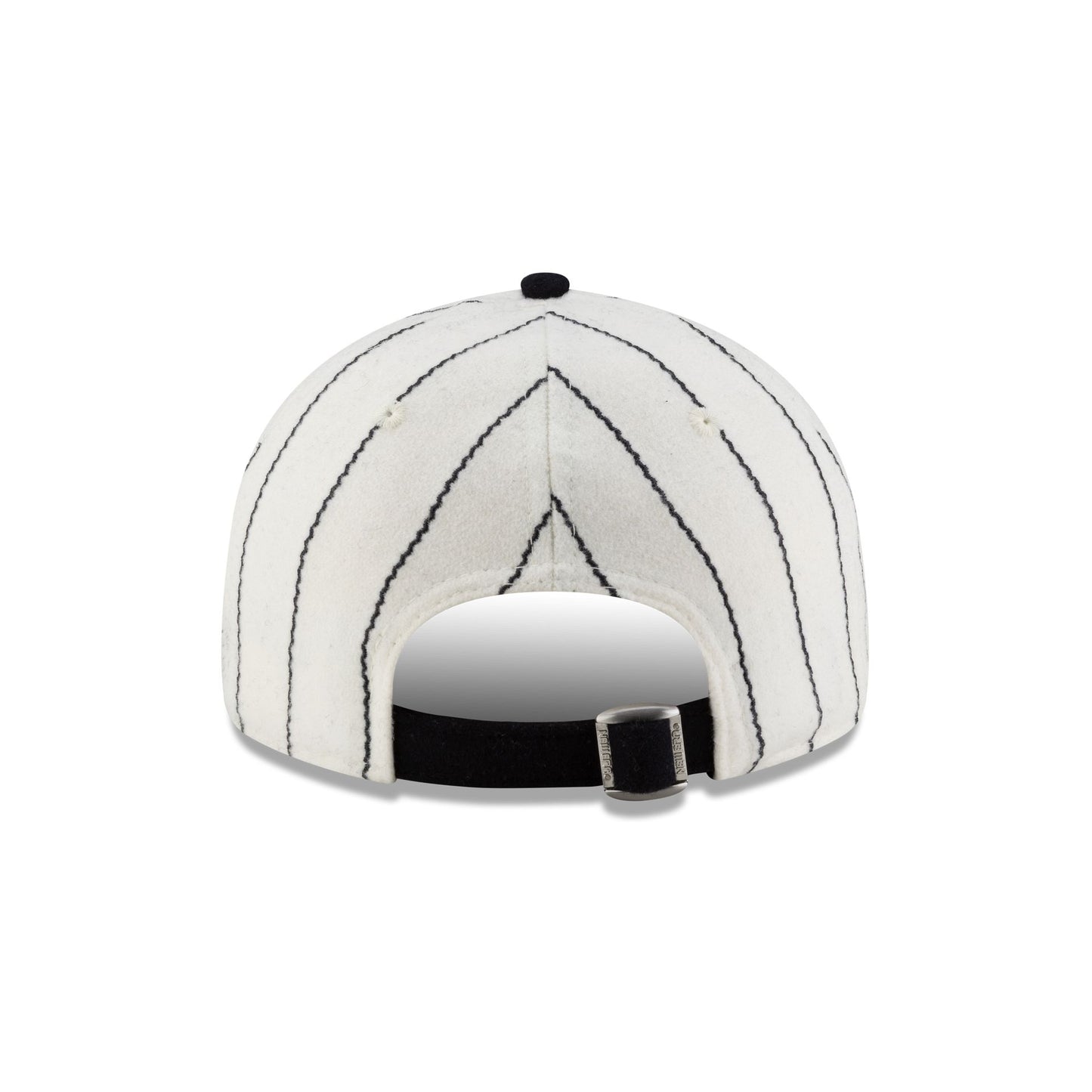 The New York Yankees Heritage Pinstripe Retro Crown 9FIFTY Strapback Cap features an embroidered Yankees Cooperstown logo at the front panels with an adjustable D-Ring closure at the rear and a green undervisor.