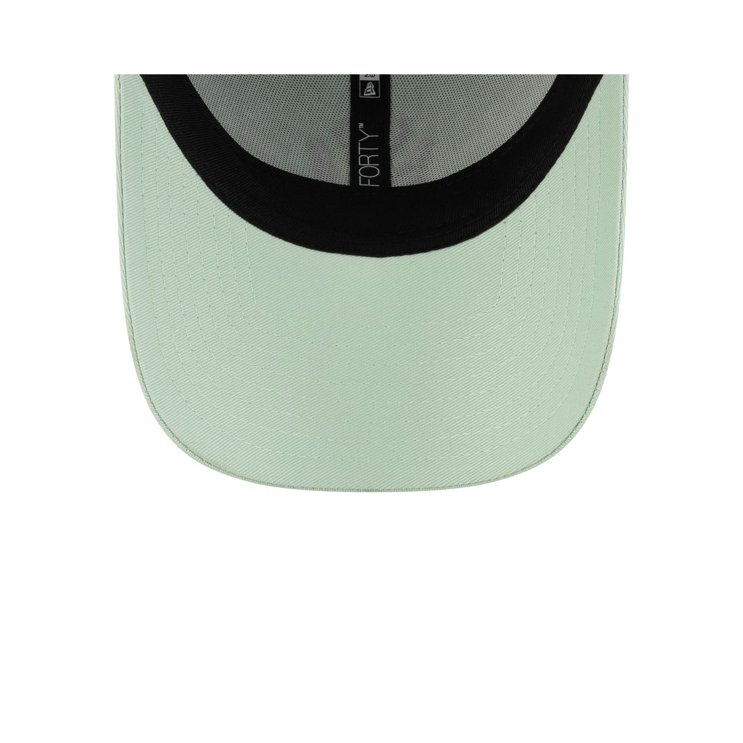 The New York Yankees League Essential Pastel Green 9FORTY Adjustable Cap features an embroidered Cap features a monochromatic embroidered Yankees logo at the front panels with an adjustable D-Ring closure at the rear.
