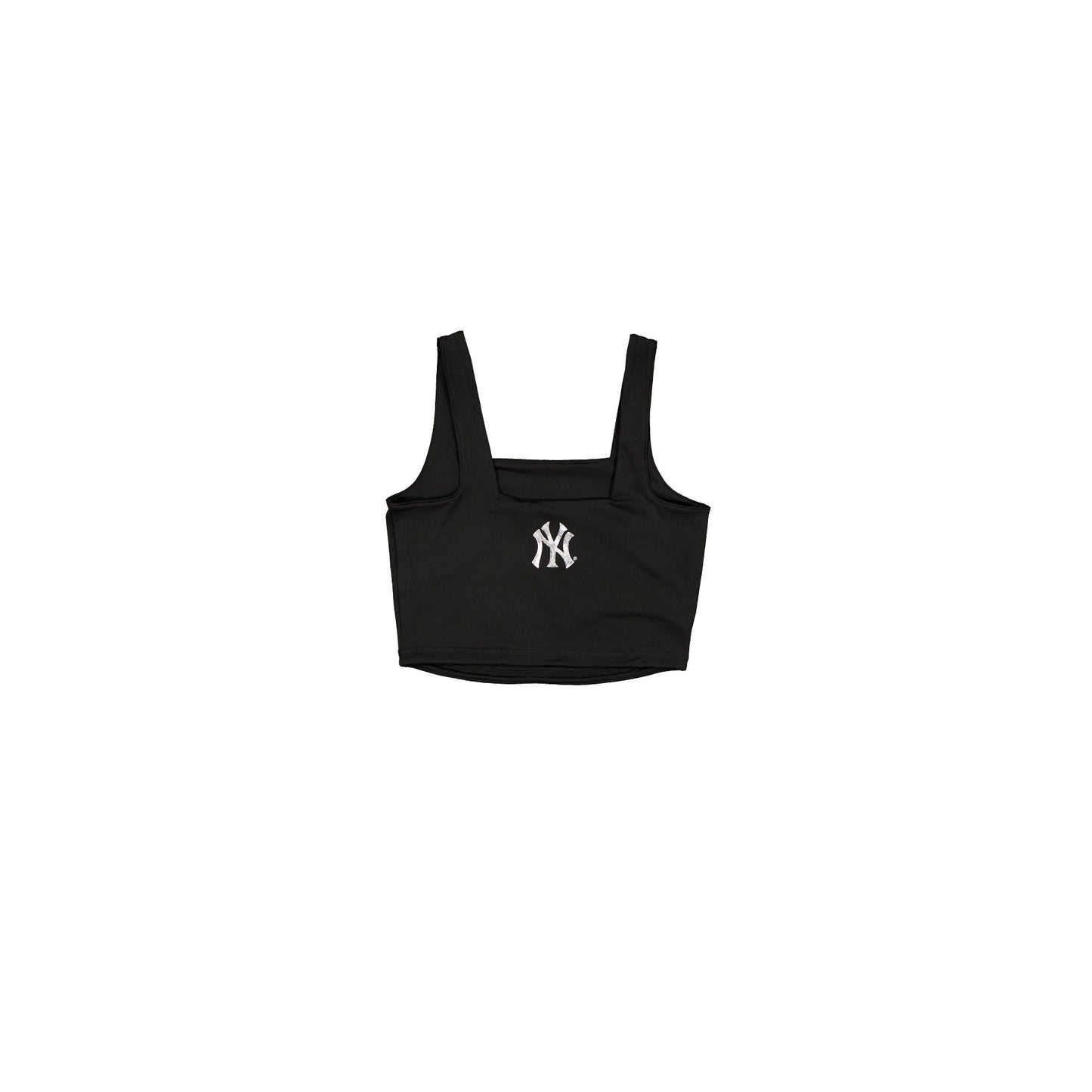 The New York Yankees Leisure Women's Black Tank Top features a screen-printed Yankees stacked wordmark at the front and logo at the rear.