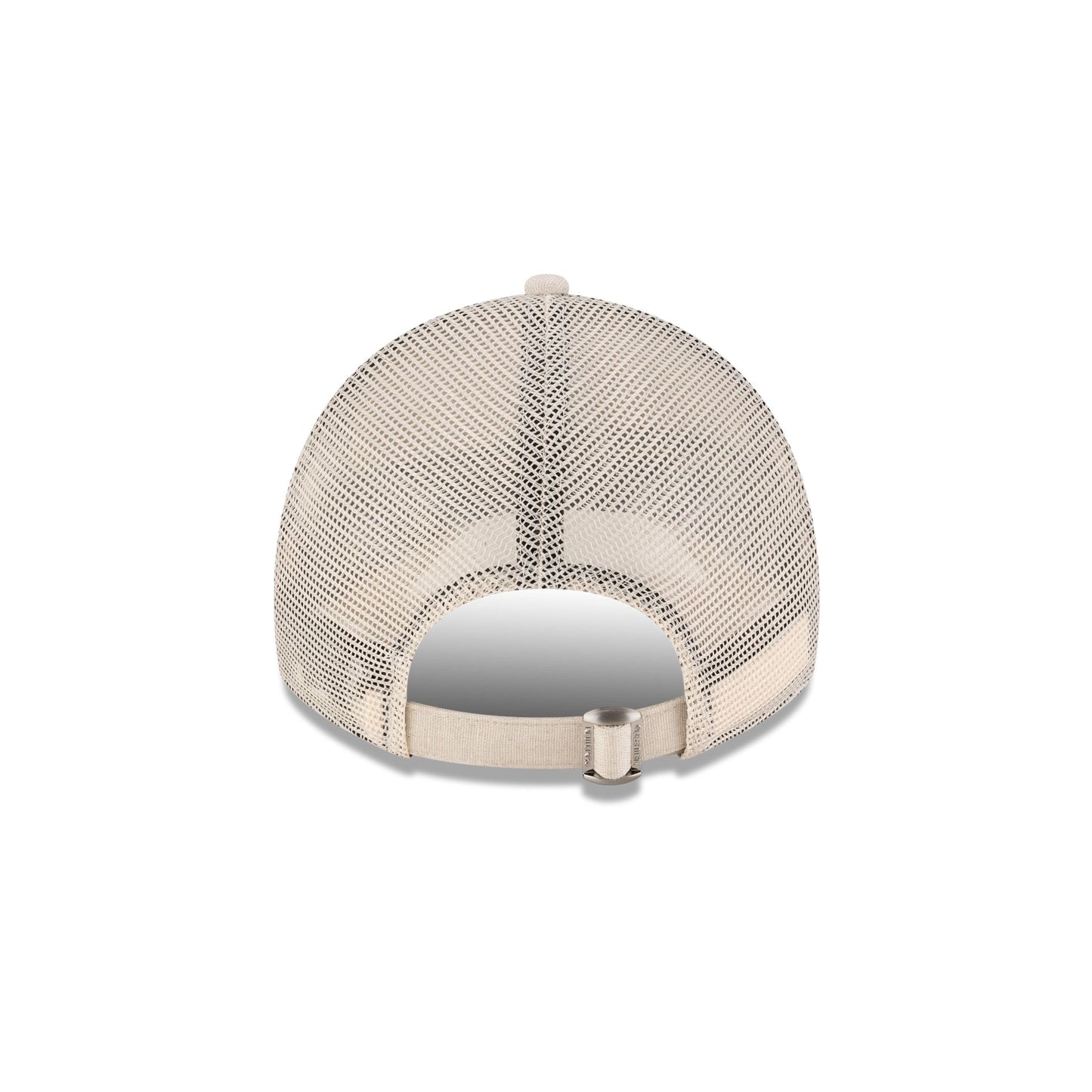 The New York Yankees Linen Cream 9TWENTY Trucker features a monochromatic embroidered Yankees logo at the front panels with an adjustable D-Ring closure at the rear.