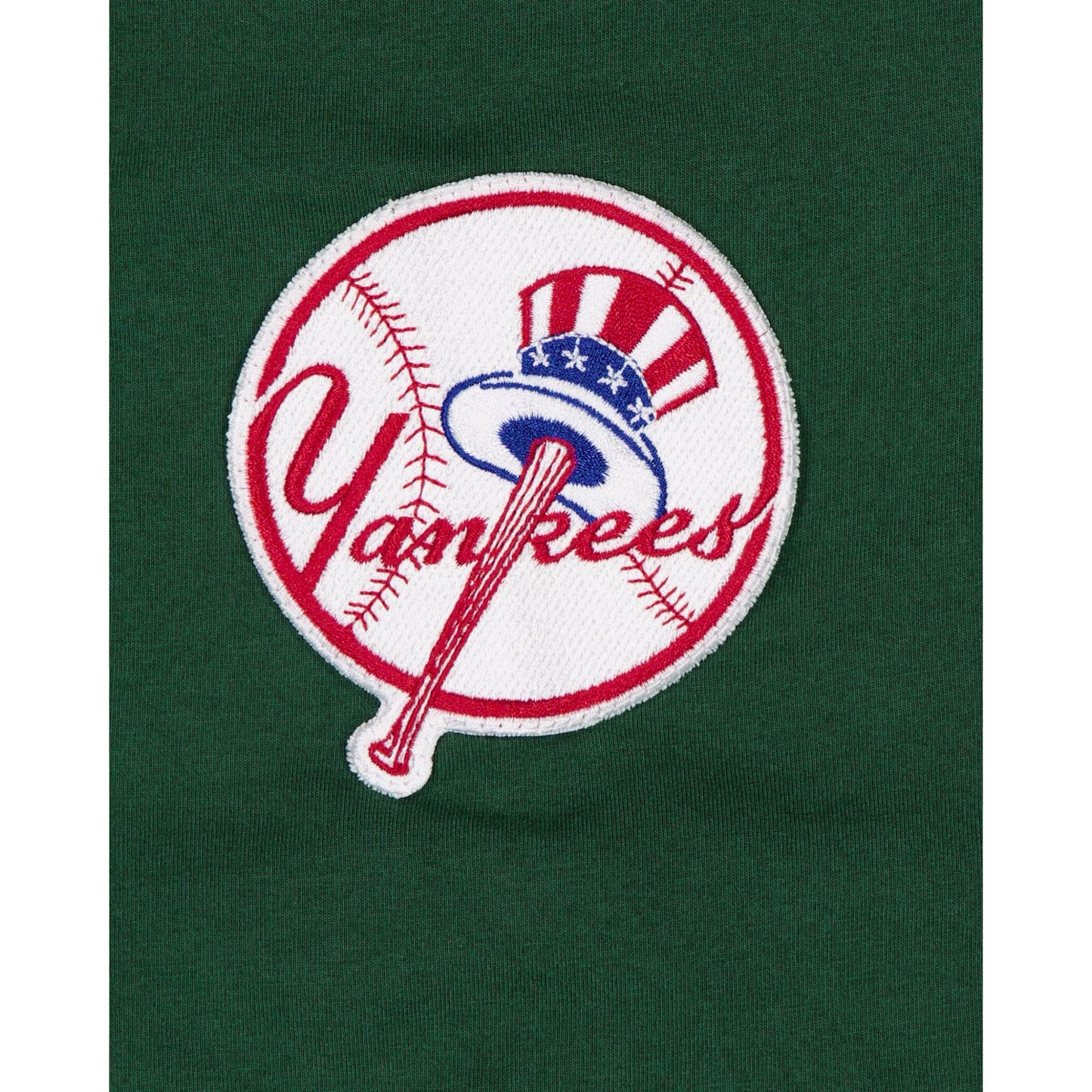 The New York Yankees Logo Select Color Flip Green T-Shirt features a chenille applique Yankees logo at the left chest with team patches at each sleeve and an embroidered team script at the rear.