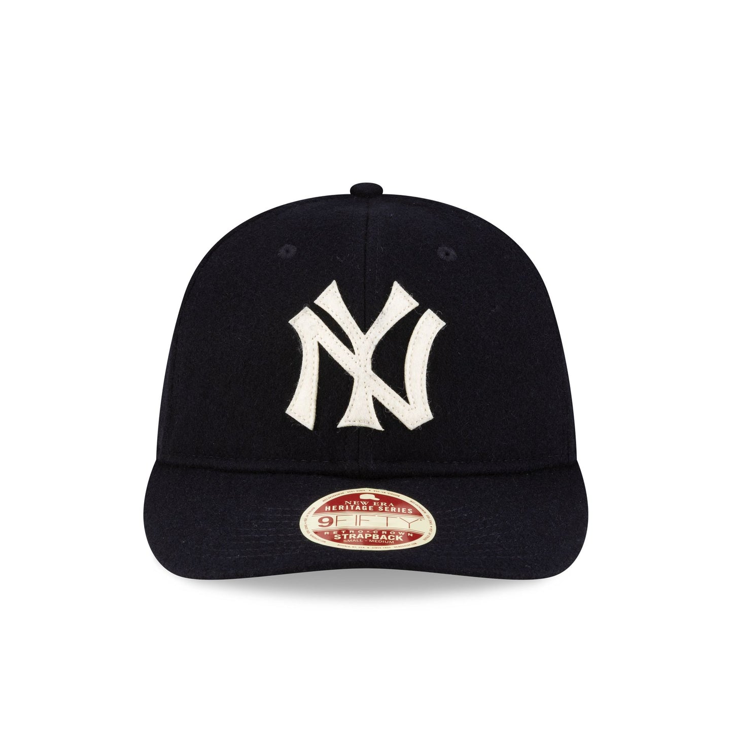 The New York Yankees Melton Wool Heritage Series Retro Crown 9FIFTY Strapback features an embroidered Yankees Cooperstown logo at the front panels with a wool fabrication throughout and an adjustable strapback closure at the rear.