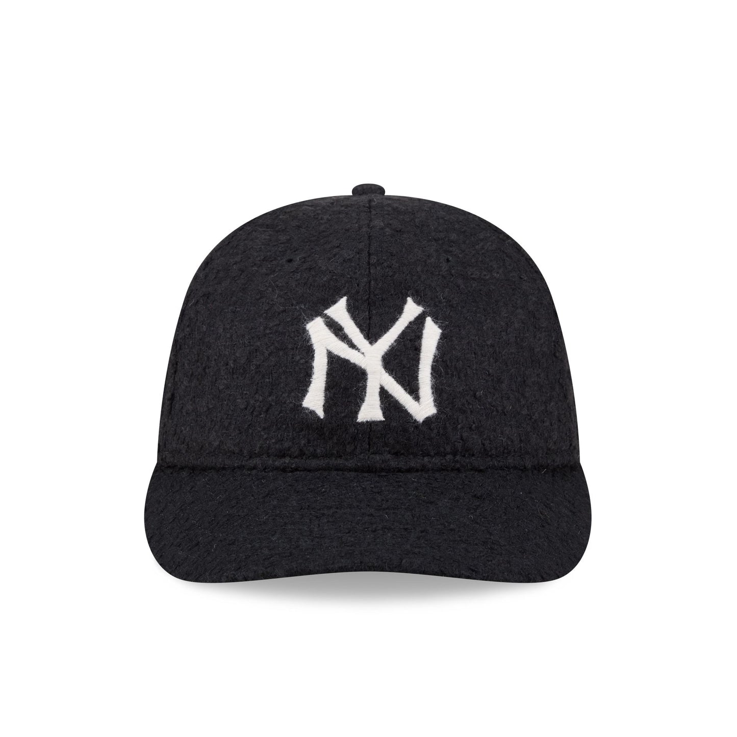 The New York Yankees Navy Merino & Cashmere Moon Retro Crown 9FIFTY Adjustable Cap features an embroidered Yankees Cooperstown logo at the front panels with a Merino and cashmere Moon fabrication throughout and a satin Moon tag woven to the right-wear side. Additional details include an adjustable metal clasp closure at the rear and a gray undervisor.