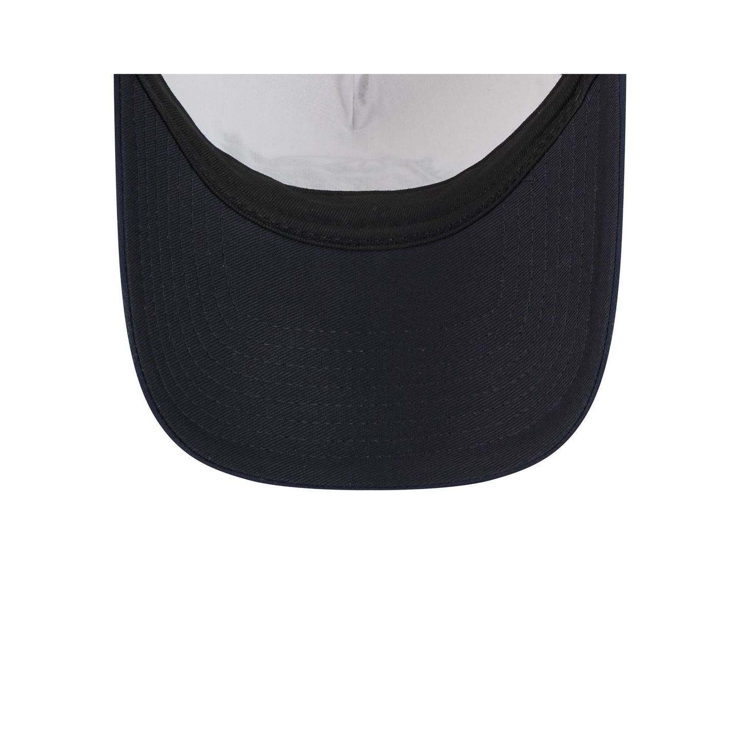 The New York Yankees Navy Purple 9FORTY A-Frame Trucker features an embroidered Yankees logo at the front panels with a snapback closure at a mesh rear.