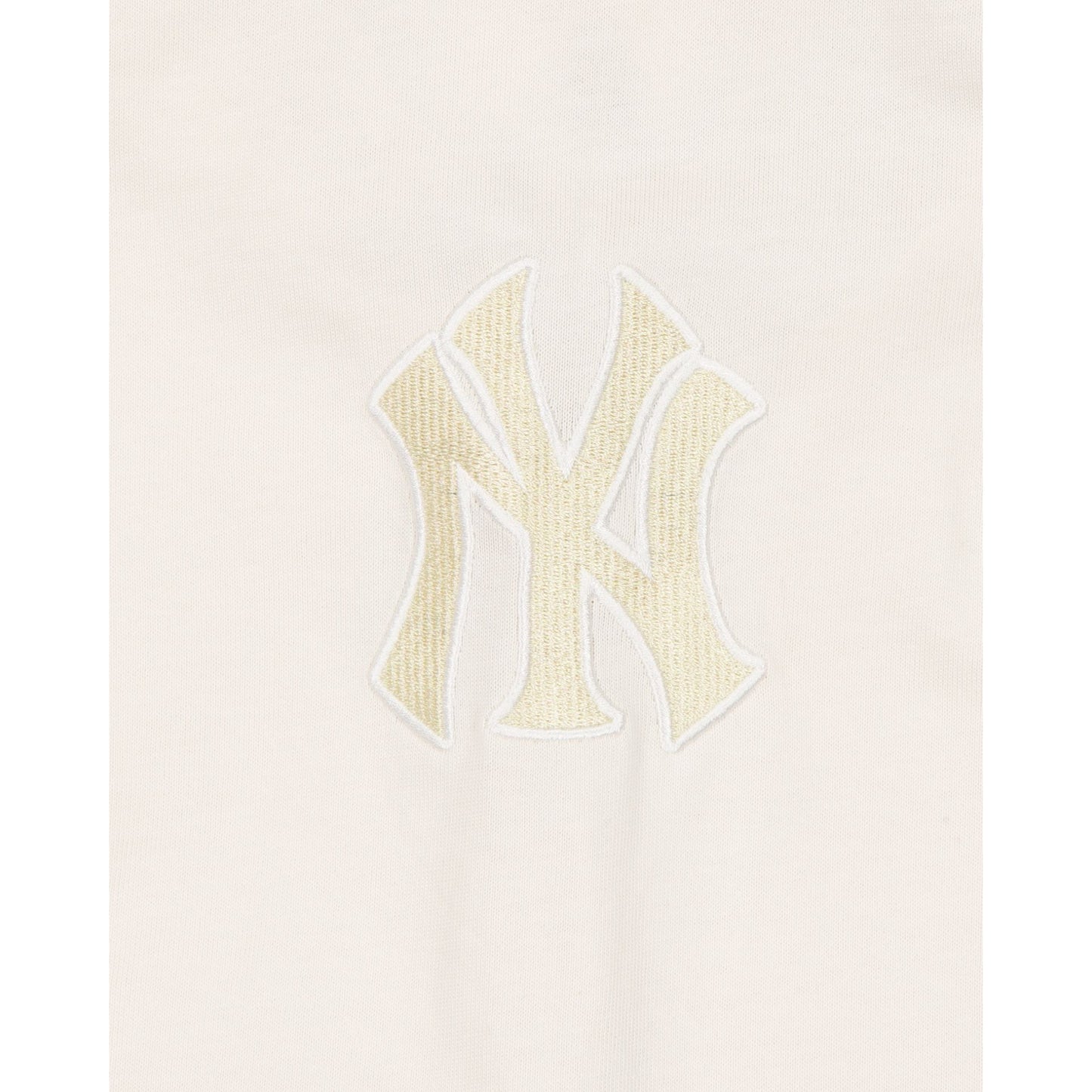 The New York Yankees Off White Script Long Sleeve Rugby Shirt features an embroidered Yankees script wordmark at the front and a matching logo at the right sleeve.
