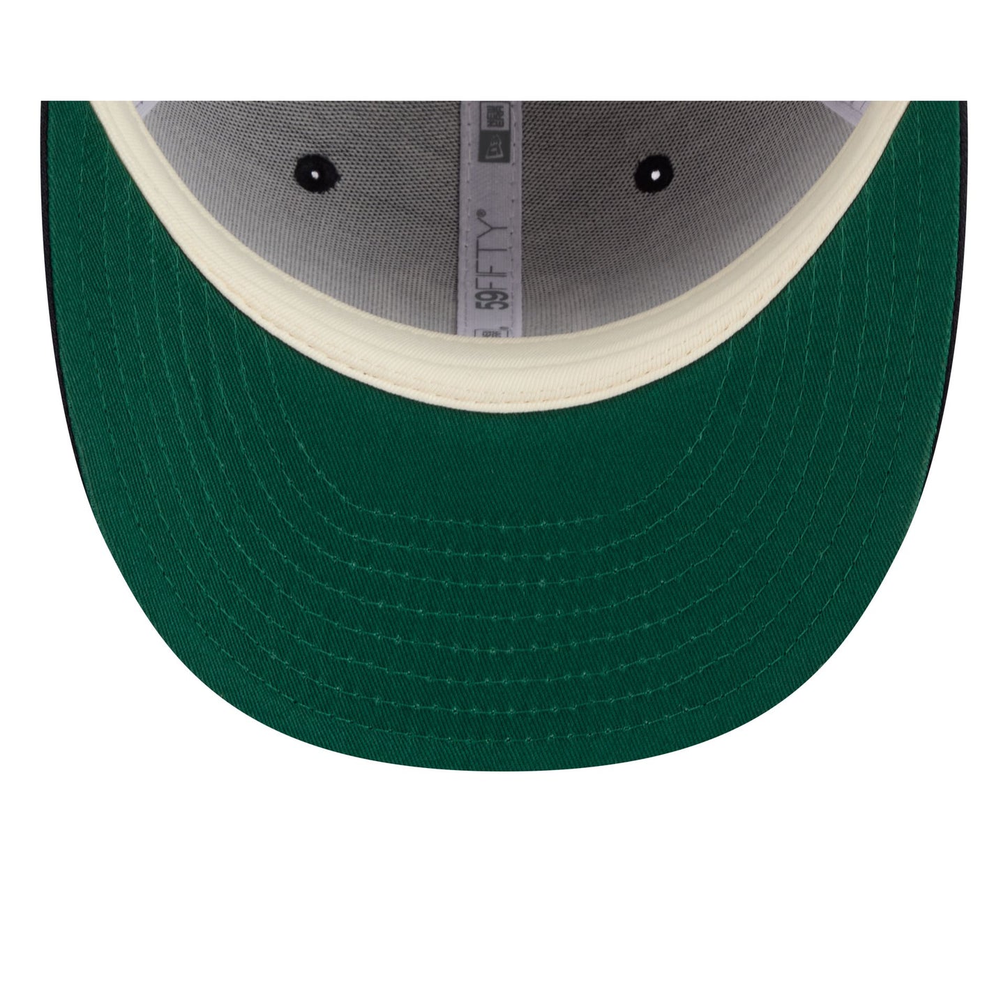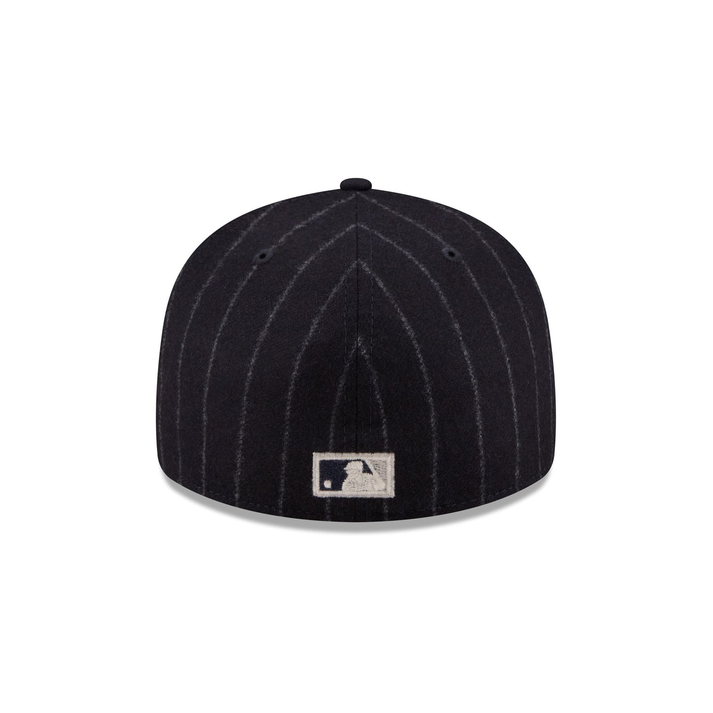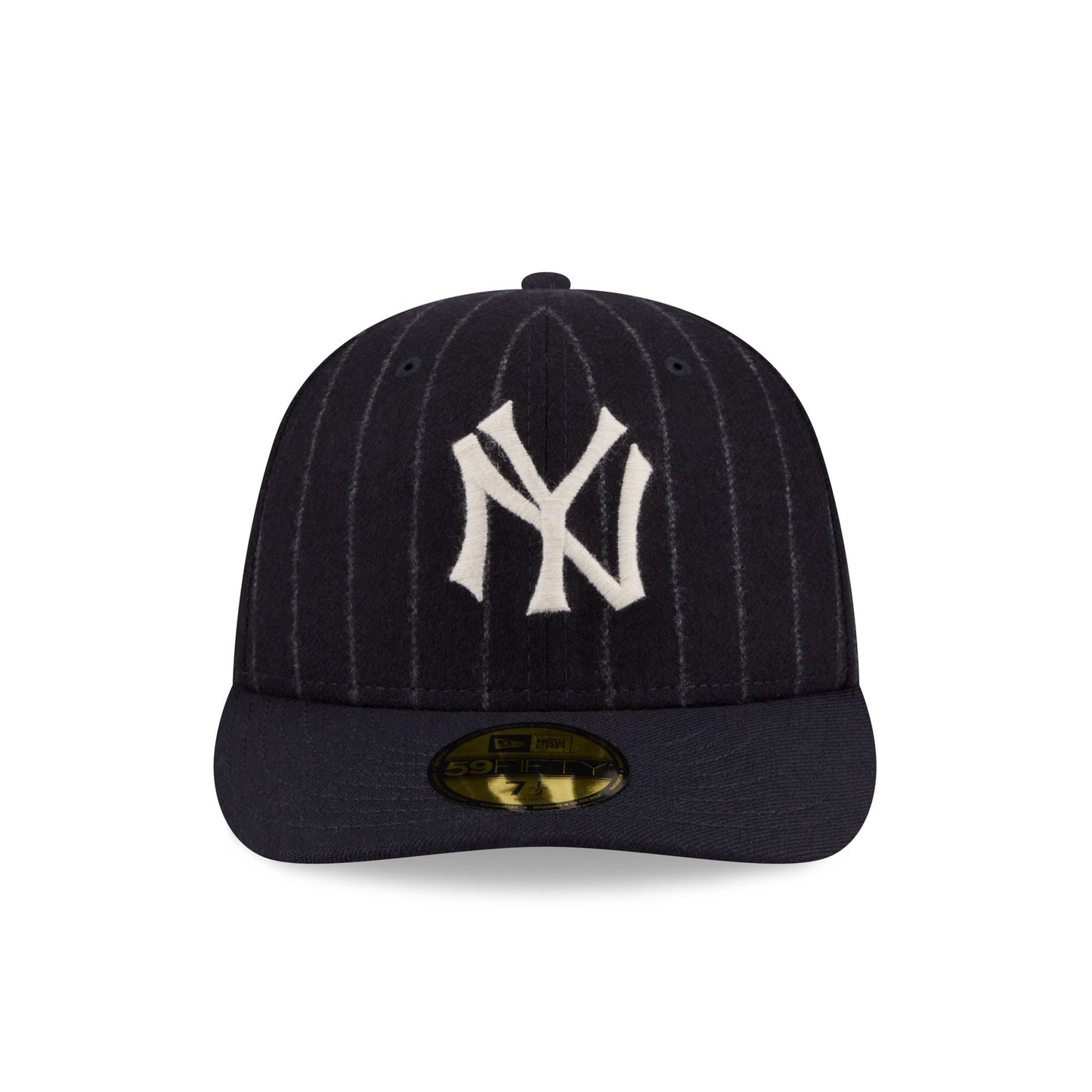 The New York Yankees Pinstripe Merino & Cashmere Moon 59FIFTY Fitted Cap features an embroidered Yankees Cooperstown logo at the front panels with a Merino and cashmere Moon fabrication throughout and a satin Moon tag woven to the right-wear side. Additional details include the MLB Batterman logo at the rear and a green undervisor.