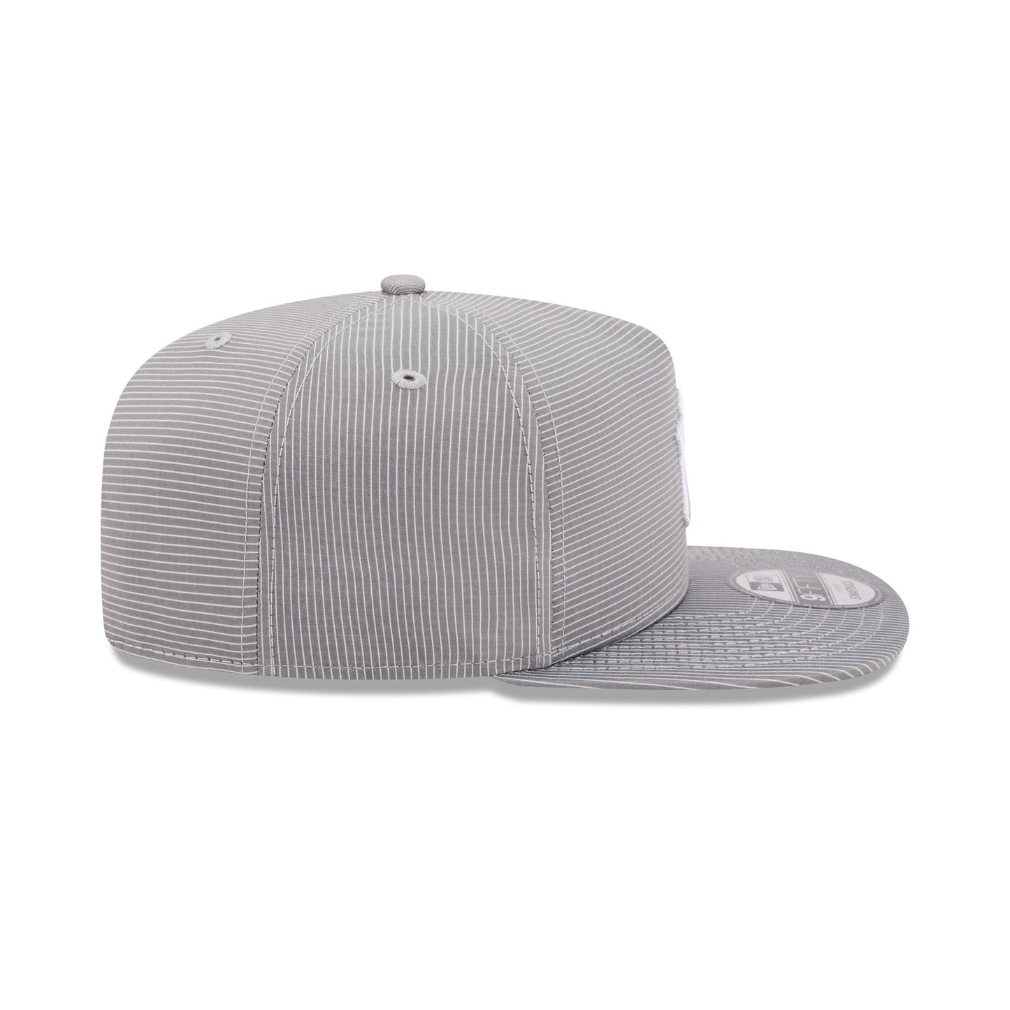 The New York Yankees Pinstripe Ripstop 9FIFTY A-Frame Snapback features an embroidered Yankees logo at the front panels with an adjustable snapback closure at the rear.