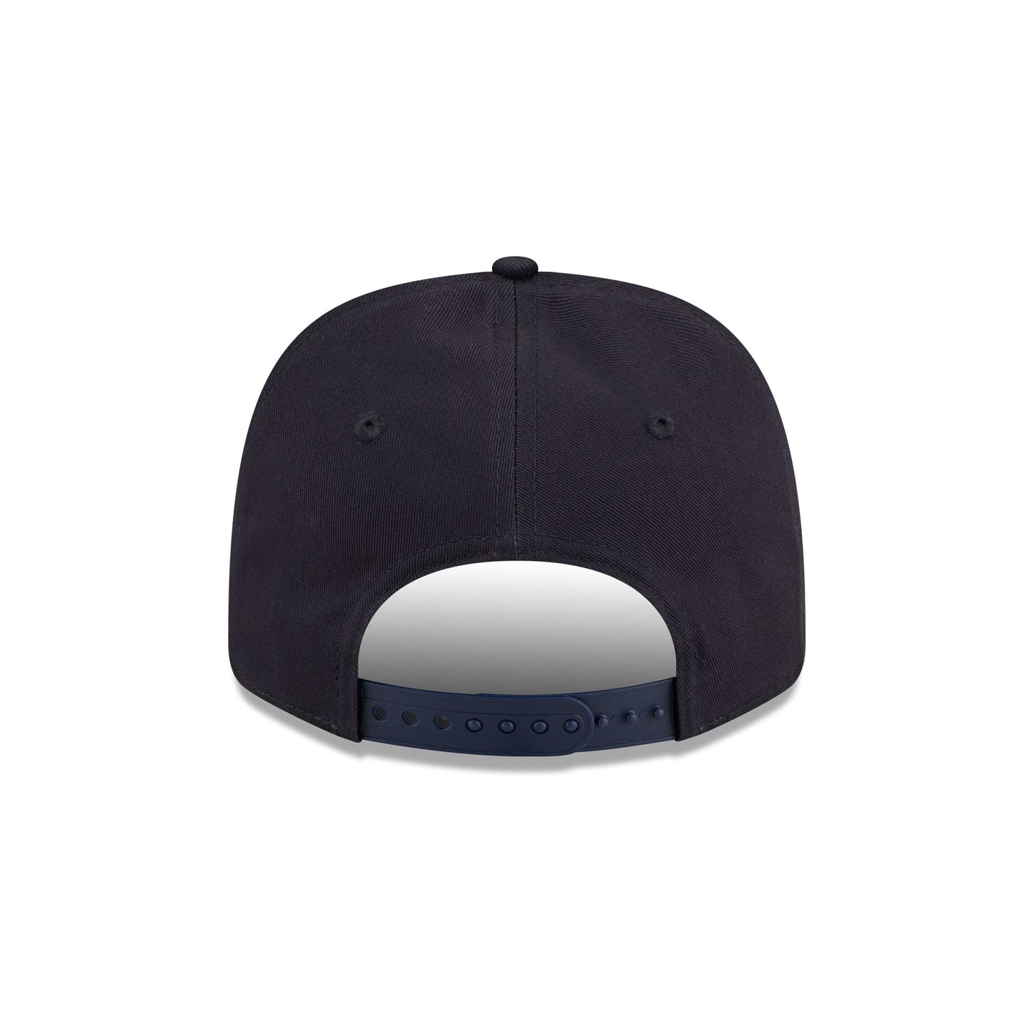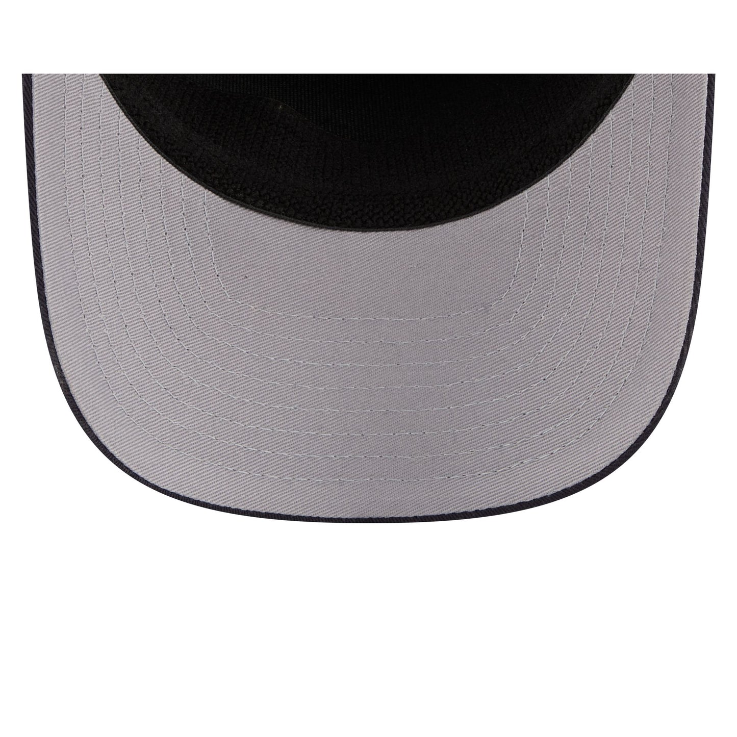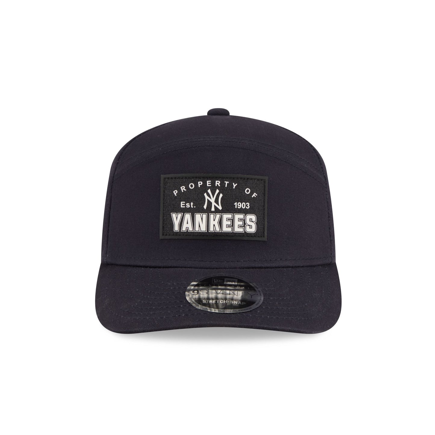 The New York Yankees Property of Patch Split Panel 9SEVENTY Stretch-Snap features a woven "Property of" Yankees patch a the front panels with a split crown construction. Additional details include an adjustable stretch-snap closure at the rear and a gray undervisor.