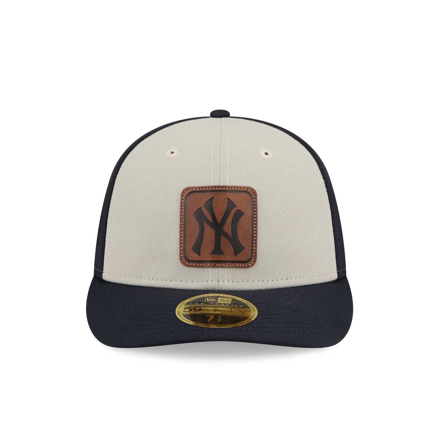 The New York Yankees Quilted Low Profile 59FIFTY Fitted Cap features a faux leather debossed applique Yankees patch at the front panels with a matching 100th Anniversary team patch at the right-wear side and an embroidered MLB Batterman logo at the rear.