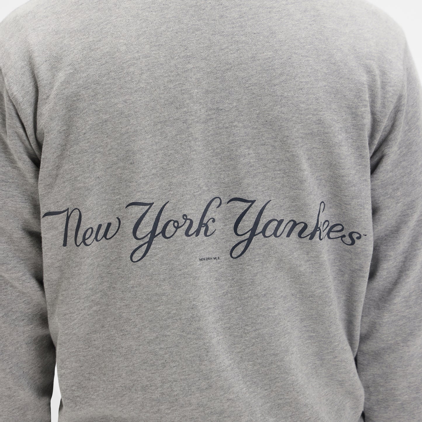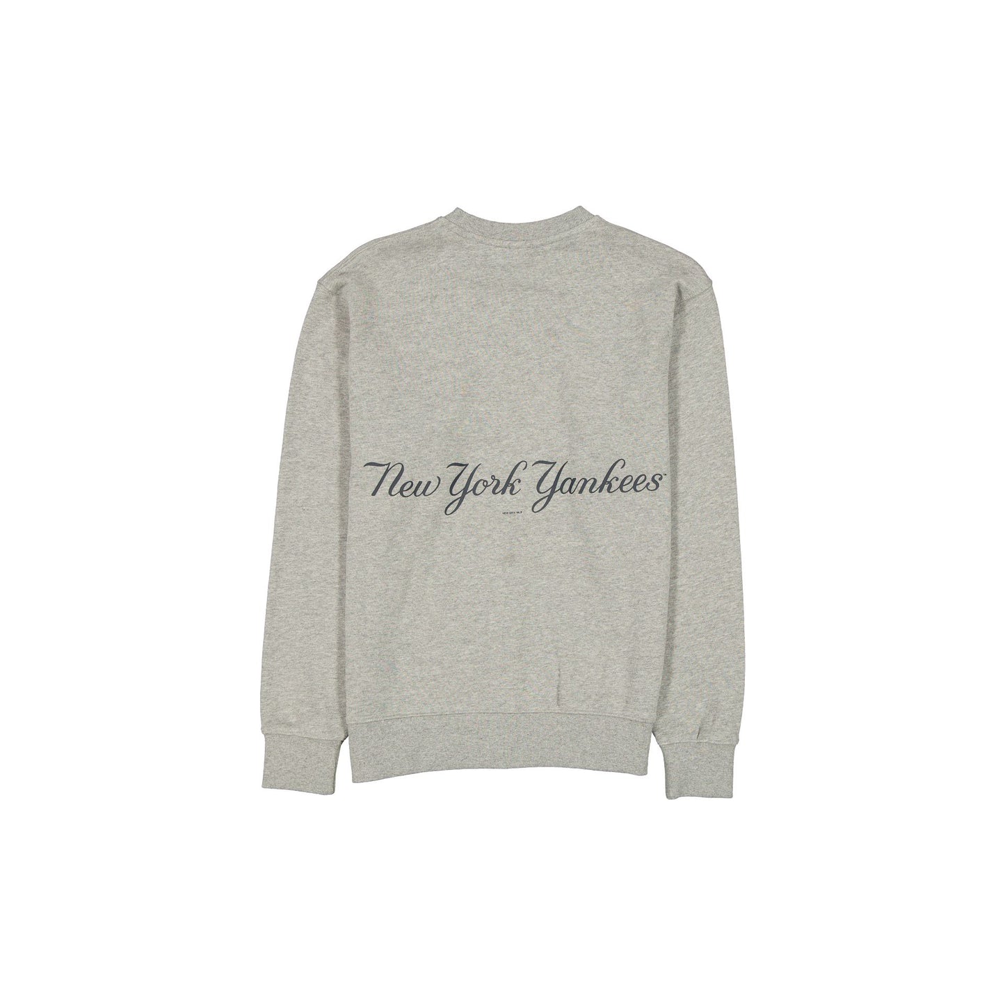 The New York Yankees Relaxed Heather Gray Crewneck features a screen-printed Yankees logo at the left chest and a script wordmark at the rear.