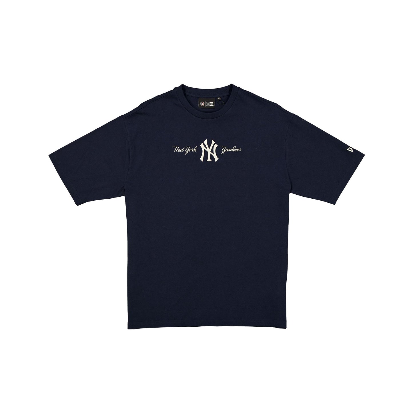 The New York Yankees Script T-Shirt features an embroidered Yankees logo and script wordmark at the front.