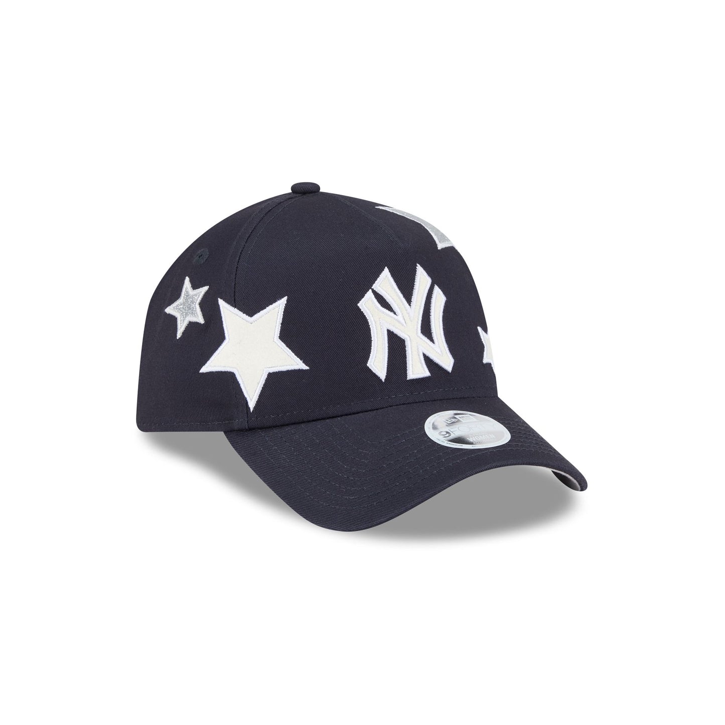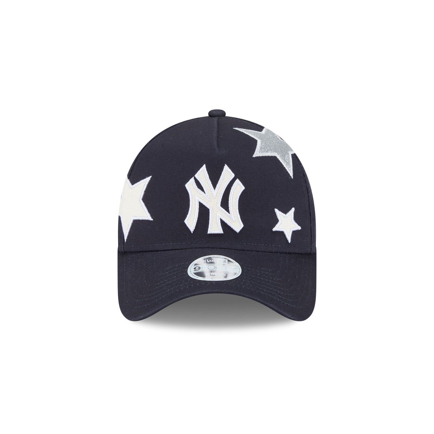 The New York Yankees Stardom Women's 9FORTY A-Frame Snapback features an embroidered Yankees logo at the front panels with sparkle stars throughout and an adjustable snapback closure at the rear.